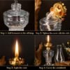 Tamaño de la lámpara de aceite: estas linternas de aceite para emergencias en interiores tienen el tamaño adecuado, son pequeñas pero pueden iluminar una gran área de tu hogar, y no ocupan demasiado espacio en tu mesa; la capacidad es de aproximadamente 4.1-6.1 fl oz, no agregas demasiado queroseno Fiable a tu servicio: nuestra lámpara de huracán de queroseno para interiores está hecha de vidrio y metal de calidad, resistente, resistente al calor y resistente al desgaste, confiable y ligera, no se deforma ni se decolora fácilmente, por lo que puede acompañarte durante mucho tiempo. Nota: esta lámpara de queroseno tiene una llama abierta. Manténgalo alejado de niños, mascotas y objetos inflamables. Cuando esté en uso, debe colocarse sobre una superficie estable y no inclinable Lo que puedes recibir: el paquete contiene un total de 6 linternas de aceite para uso en interiores, están diseñadas en 6 estilos, encantadoras y lindas; la cantidad suficiente puede satisfacer fácilmente tus necesidades de uso y compartir, ten en cuenta que no hay aceite Amplia gama de usos: puedes utilizar nuestras lámparas de huracán de queroseno en varios lugares, como cenas a la luz de las velas, cocina, sala de estar, camping, chimenea, oración, pasillo, templo, iglesia y más; son llamativas y hermosas, dándote un ambiente romántico y cálido Fácil y conveniente: nuestras lámparas de aceite vintage para uso en interiores tienen suficiente capacidad, y es fácil añadir combustible, queroseno, aceite vegetal, ghee, aceite de parafina, agua, etc., lo que es conveniente y fácil de darte una experiencia de uso cómoda y relajada; Nota: no utilizar en espacios reducidos para evitar la acumulación de sustancias tóxicas; deja que la lámpara se enfríe completamente antes de añadir queroseno; no dejes el área durante el uso. e; Después de extinguir la lámpara, asegúrese de que la llama esté completamente fuera