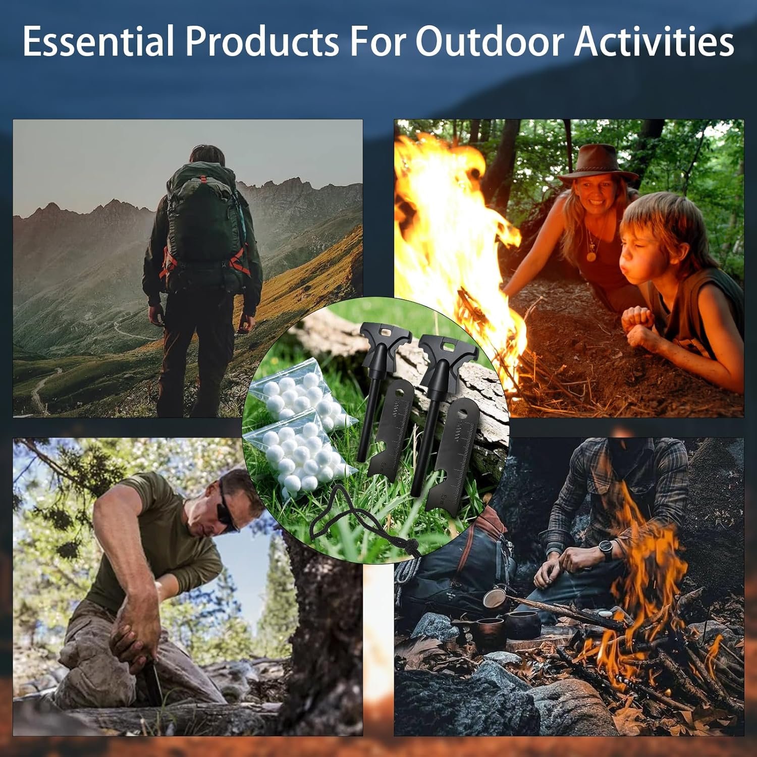 1. Pedernal y acero de emergencia perfectos: ducha de chispas a 5500°F (5,432.0 °F) para encender un fuego en cualquier clima (incluso húmedo), a cualquier altitud. Adecuado para senderismo, caza, pesca, EDC, emergencia, barbacoa, campamento y entrenamiento de exploradores, etc. 2. Arrancador de fuego de magnesio fácil de usar: Este kit de fuego incluye 20 bolas de yesca, que se embalan en bolsas impermeables, seguras y confiables. Arrancador de fuego de campamento perfecto para bushcraft, supervivencia, senderismo, iniciadores de fuego para fogatas y campamentos. 3. Arrancador de fuego de pedernal confiable: Nuestras bolas de yesca están protegidas por bolsas impermeables. Incluso si se mojan en un aguacero o se empapan accidentalmente en agua, el iniciador de fuego de supervivencia puede continuar utilizándose después de secarse, y puede golpearse continuamente durante más de 12000 veces. 4. Cuerda de emergencia y encendedor de fuego multifuncional: viene con un cordón de emergencia de nailon y una herramienta multifunción 6 en 1 que se puede utilizar como encendedor de fuego de borde recto, raspador de yesca, escala de mapa, regla, llave hexagonal y abridor de botellas. 5. Compacto y ligero: un solo iniciador de fuego de pedernal pesa 1.5 onzas y mide solo 11,4 cm de largo, por lo que es fácil de colocar en cualquier mochila o kit de transporte diario (EDC). El mango de diseño ergonómico mejora el agarre y la facilidad de uso, por lo que es perfecto para aventuras en la naturaleza o situaciones de supervivencia a largo plazo. Esta es una herramienta esencial cuando estás fuera de casa.