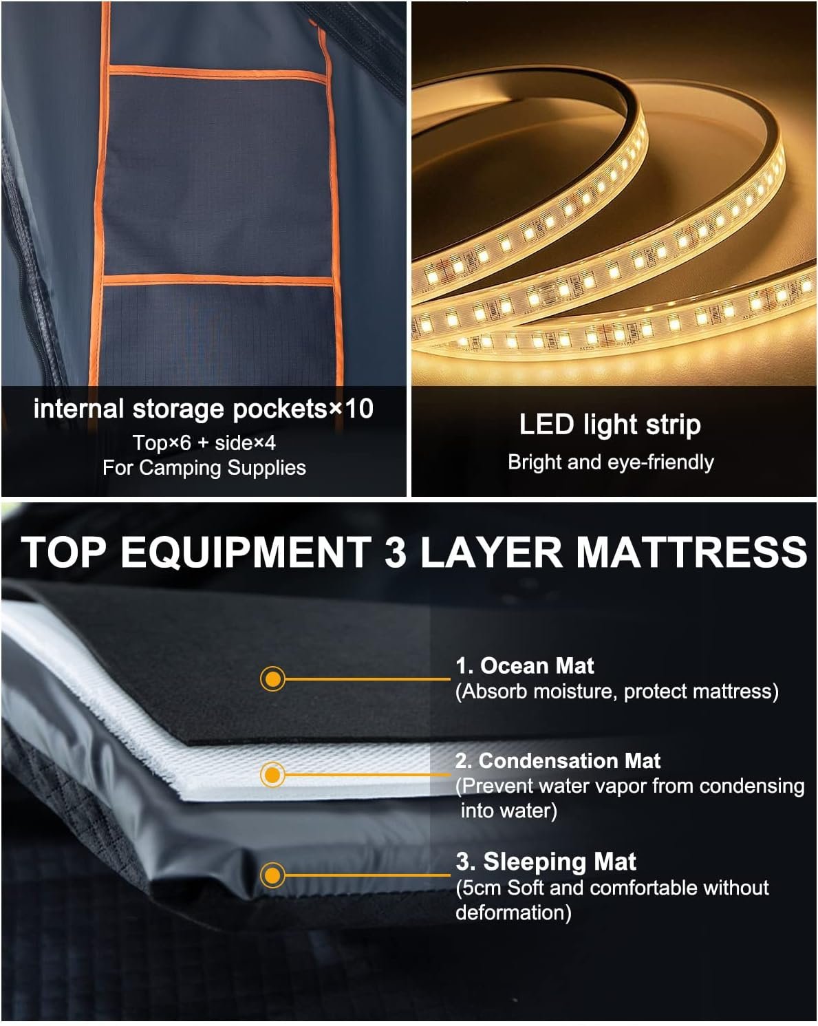 Componentes incluidos: 1 colchón, 2 almohadillas protectoras, 2 barras de equipaje para tienda de campaña, Bolsa de almacenamiento* 10+bolsa de zapatos* 2, Escalera de aluminio* 1+bolsa de almacenamiento de escalera* 1, Tira de luz LED, Tira de luz LED.