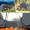 Tienda de campaña para 1 persona: lo suficientemente espaciosa con dos puertas en forma de D y dos vestíbulos para acomodarse. Peso de la tienda de campaña para 1 persona: 4.4 libras (1.98 kg). Dimensiones del piso interior: 223,0 cm x 85,1 cm (223 x 85 cm). Altura interior: 106,9 cm (107.5 cm). Área interior del toldo: 20.4 pies cuadrados. Tienda de campaña para 2 y 4 personas: esta tienda de campaña es lo suficientemente amplia con dos puertas en forma de D y dos vestíbulos para acomodar hasta dos personas. Peso de la tienda para 4 personas: 9.7 libras. Dimensiones del piso interior: 260,1 cm x 240,0 cm (260 x 240 cm). Altura interior: 160,0 cm (160 cm). Peso de 2 personas: 5.2 libras (2.35 kg). Dimensiones del piso interior: 220,0 cm x 122,9 cm (220 x 123 cm). Altura interior: 110,5 cm (110.5 cm). Área interior del toldo: 31 pies cuadrados. Material de alta calidad: el material de la tienda de campaña consta de fibra de poliéster de alta calidad 68D (1 persona) y 75D (4 personas), así como un revestimiento impermeable 210T, que evita eficazmente que el agua penetre. La tienda de campaña se puede utilizar sin importar si está nevando o lloviendo. Duradera, ligera y transpirable: las paredes de malla ultraligeras no se transparentan y tienen capacidad para una configuración ultraligera independiente, barra de aluminio 7001 y 7075, se pueden añadir seis lineas reflectantes para garantizar que la tienda sea más fuerte en condiciones de viento fuerte. Fácil de instalar y autónoma: La más fácil instalación, toma sólo unos sencillos pasos para montar una tienda de campaña perfecta en 3 minutos. Su autonomía permite que la tienda ligera se mueva y se reposicione sin tener que desmontarla.