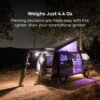 Una linterna ligera, inflable y plegable con 9 modos de color vibrantes y un ajuste de ciclo de color para una iluminación dinámica y divertida en cualquier lugar Alimentado por un panel solar de alta eficiencia; proporciona hasta 9 horas de luz colorida y confiable por carga sin necesidad de cables externos o baterías Equipado con 10 LED RGB que brillan a través de un acabado mate; incluye rojo, verde, azul, morado, amarillo, cian, naranja, blanco y un modo de ciclo de color suave Diseño ultraligero que pesa solo 4.4 oz (125 g) y se pliega hasta 2,5 cm para un fácil transporte y almacenamiento compacto Totalmente impermeable con una clasificación IP67 y construido para soportar hasta 150 libras (149.9 lbs) de presión; hecho para su uso en entornos exteriores resistentes