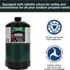 PURO Y CALIENTE: Cada botella contiene propano estándar de la marca BLUEFIRE de 16.4 onzas con una pureza > 95%. ¡Más caliente y menos olor! FÁCIL DE USAR: Diseño para ser portátil y seguro. Fácil de transportar para actividades al aire libre, COG está diseñado lo suficientemente bajo como para mantenerse estable en el suelo cuando se usa; QUEMADA EN CALIENTE: Temperatura de llama en oxígeno = 37.1 °F/5.110 ° F; Temperatura de la llama en aire = 35.6 °F/3.600 ° F, BTU/Cu.Ft.=2.498, lo suficientemente caliente para la mayoría de los dispositivos y trabajos; Multiusos: adecuado para actividades al aire libre o trabajar en casa, no importa que tus intereses sean acampar, pescar, cazar, escalar, hacer senderismo o cocinar, asar a la parrilla, arder, iluminación, etc., nuestro producto es perfecto para ti. Incluso se puede utilizar como combustible de soldadura o soldadura fuerte para hacer los proyectos de reparación o mantenimiento, grandes o pequeños; APROBADO: Somos uno de los dos únicos fabricantes de cilindros de gas, cuyos productos pasaron las regulaciones federales y pueden ser transportados y distribuidos legalmente en el mercado norteamericano.