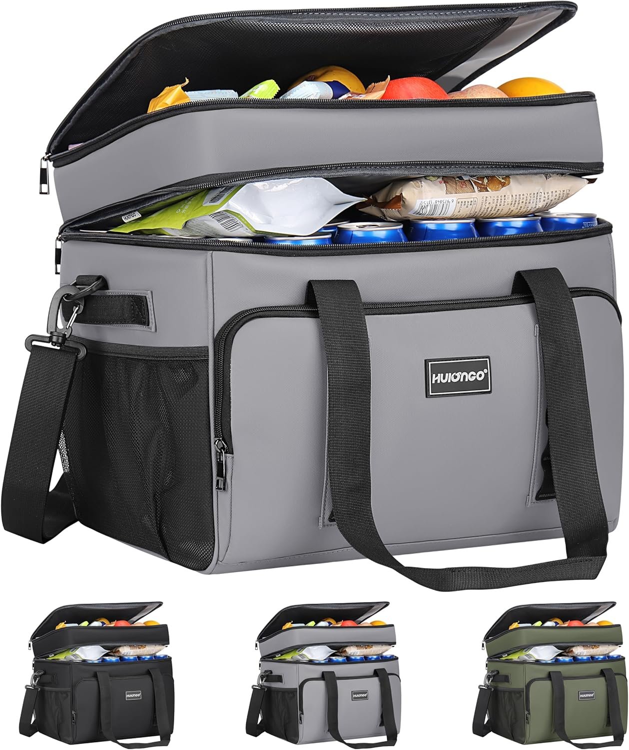 Gran capacidad: con dimensiones de 39,9 cm x 31,0 cm x 33,0 cm y una capacidad de 11 galones para hielo y bebidas, esta gran bolsa térmica cuenta con un gran espacio de almacenamiento, capaz de contener hasta 60 de tus bebidas favoritas. Ya sea que estés de campamento, picnic o organizando una fiesta de barbacoa, esta bolsa hielera se adapta fácilmente a una variedad de alimentos, bebidas y aperitivos, desde frutas hasta carnes y mariscos. Es lo suficientemente espacioso como para llevarlo todo. Tiempo de frío prolongado: con un innovador diseño de aislamiento de 5 capas, la bolsa Hulongo Cooler garantiza que tus artículos se mantengan refrescantemente fríos durante períodos más largos. Con un exterior duradero hecho de tela Oxford 600D rip-stop y una capa de PVC impermeable, el interior está fabricado con materiales PEVA reforzados de grado alimenticio para un rendimiento a prueba de fugas y resistente al desgarro. La capa intermedia de espuma EPE integrada y el forro 210D proporcionan aislamiento adicional, manteniendo tus artículos fríos hasta 12 horas. Construcción duradera: la bolsa térmica está diseñada para durar, con opciones de transporte de doble costura, puntos de recogida reforzados, correas de hombro y asas que pueden soportar cargas pesadas. Esta bolsa hielera está lista para cualquier desafío. Diseño innovador: disfruta del diseño único de dos pisos de la bolsa de enfriamiento suave, con un compartimento superior aislado de papel de aluminio perfecto para almacenar sándwiches, golosinas congeladas, frutas, artículos esenciales o utensilios. Gracias a sus capas resistentes, esta bolsa térmica se puede plegar y almacenar fácilmente en tu maletero o debajo de un asiento de automóvil, asegurando una cómoda portabilidad dondequiera que vayas. Funcionalidad versátil: esta hielera multiusos de lados suaves es un compañero versátil para todas tus aventuras al aire libre, ya sea que estés de campamento, en viajes por carretera o simplemente disfrutando del aire libre. Es una solución ideal para los servicios de entrega de alimentos y simplifica la tarea de transportar comestibles desde la tienda o mercado de agricultores a su cocina.