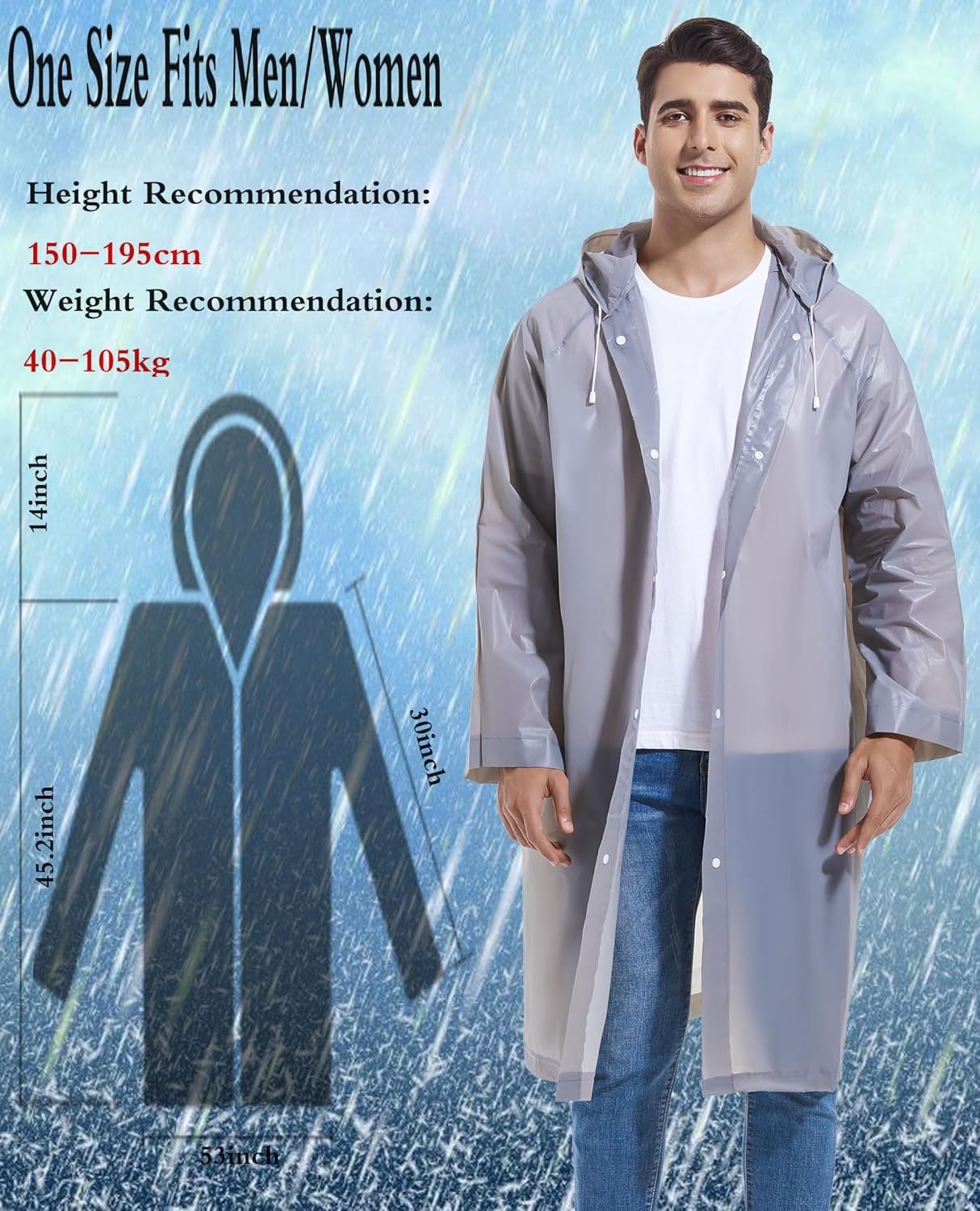 La mejor calidad: nuestros impermeables están hechos de material EVA, grosor de 0.006 in. Nuestros impermeables no solo se secan rápidamente, sino que también se pueden reciclar durante mucho tiempo. Los impermeables son duraderos, resistentes al desgarro y ligeros. Reutilizable: este impermeable es reutilizable; el impermeable es de manga larga y el diseño de capucha grande con cordón mantiene tus brazos, cabeza y cuello secos bajo la lluvia. El cierre de botón a presión es fácil de poner y quitar. Ligero: los impermeables son fáciles de transportar, ligeros y cómodos de llevar. Al mismo tiempo, es suave, cómodo de llevar, pequeño en tamaño y plegable. Talla única: tamaño 69,8 cm x 149,9 cm, longitud de la manga: 76,2 cm, gran longitud en las mangas y en las piernas, adecuado tanto para adultos como para jóvenes, hombres y mujeres, niñas y niños. Disfruta de actividades al aire libre: adecuado para todas las estaciones y actividades al aire libre, como Disneyland, parques temáticos, actuaciones, deportes, viajes, caminar, pesca, senderismo, camping, instalaciones de diversiones acuáticas, etc.
