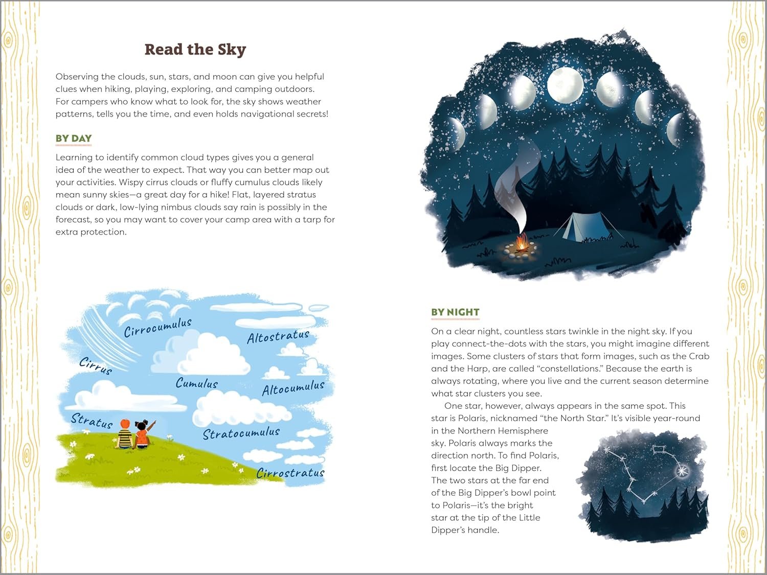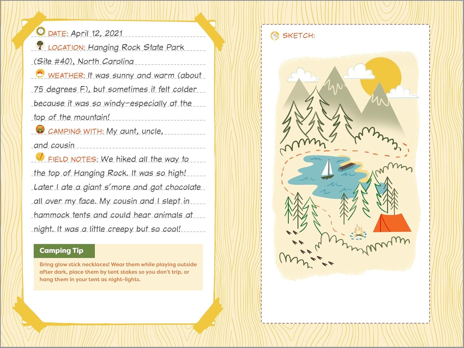 A journal for kids ages 8 to 12 to keep all their favorite camping memoriesCamping is a fun and adventurous way to experience the earth’s natural wonders. This camping journal will help kids keep track of all their nature trips so they can enjoy the memories whenever they want! They’ll start by learning cool facts and information that may come in handy as they hike and explore. Then, they’ll dive right into journaling about their camping spots, the weather, any critters they encounter, and other exciting stuff they see or do along the way.This standout among camping books for kids includes:A camping tool kit Young campers will learn how to analyze clouds to predict the weather, identify plants and animal tracks they might come across, and keep their campsite clean.Room to get creative The pages include suggestions for what to write about each camping trip, and extra space for notes, sketches, and more lets kids can make this journal their own.Outdoor tips and facts Did you know garlic keeps mosquitoes away? Kids will discover all sorts of fascinating info and fun exercises that help them get the most out of their time in the great outdoors.Encourage kids to get creative and record their outdoor adventures with this camping journal. Leer más