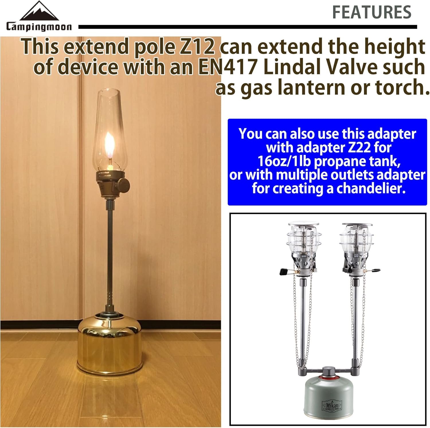 CAMPINGMOON Barra de extensión para lámpara de gas linterna