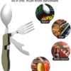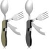 1 kit de utensilios Hobo color negro y verde, juego de 2 utensilios para comer múltiples en el paquete. Los prácticos utensilios de campamento se expanden a tamaño completo, fáciles de comer sin ensuciar. Y se pliega hasta un tamaño de bolsillo. Limpia y almacena fácilmente, cabe en tu bolsa de viaje, lonchera. 2 fáciles de transportar: los bonitos utensilios plegables vienen en tamaño compacto. Es desmontable, un pequeño ahorro de espacio, añade poco a los mochileros. Puedes poner en mochila/cajón de oficina/bolsa de almuerzo/bolsa de almacenamiento/equipaje/bolso/RV/bolsa de supervivencia/maletera/bolso. 3 Prácticas combinaciones de cubiertos: esta herramienta de alimentación multifunción es fácil de desmontar y combinar. Cuida la mayoría de tus utensilios cuando almuerzas para el trabajo en la oficina, comidas sobre la marcha o disfrutas al aire libre, viajes, camping, senderismo, viajes de mochilero, El utensilio utilitario combinado resistente y fuerte está hecho de acero inoxidable resistente con mango de aluminio único. Hace que el juego de vajilla de viaje sea resistente, libre de óxido, soporte años de uso. 5 Reutilizable: este dispositivo personal para exteriores es reutilizable, sin residuos multiherramienta en lugar de utensilios de plástico. Gran regalo para amantes de la barbacoa, campistas, estudiantes, exploradores, viajeros, aventureros, trabajadores de oficina.