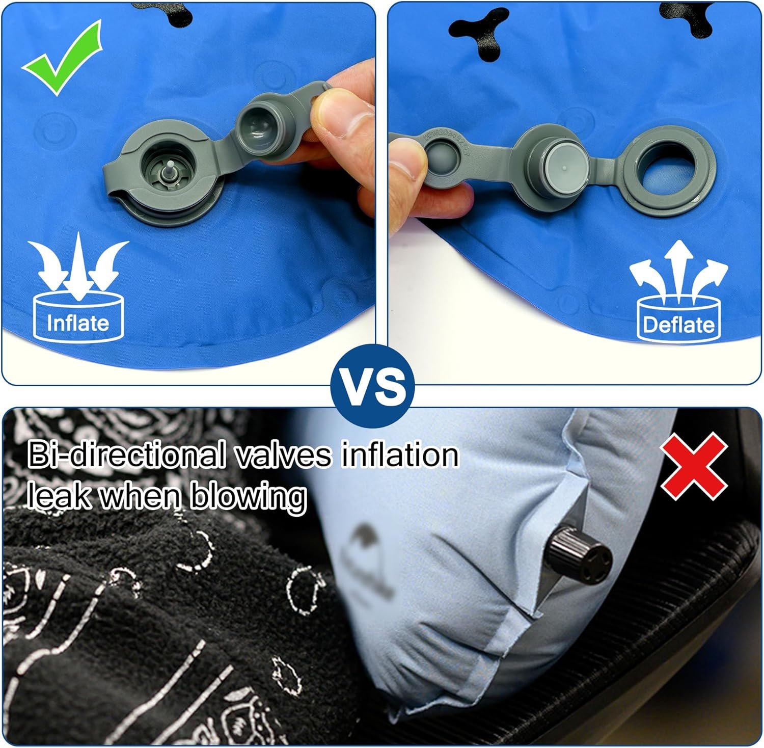 Cojín de aire de inflado y desinflado rápido: el cojín autoinflable se infla en solo 3 segundos para proporcionar comodidad instantánea. Para lograr el grosor ideal, tienes que inflarlo por la boca para obtener la firmeza perfecta. Cuando hayas terminado de usarla, simplemente suelta la válvula y enróllala en la bolsa de almacenamiento incluida. Cojín compacto y conveniente: se pliega en un almacenamiento del tamaño de la palma de la mano, lo suficientemente ligero como para caber en mochilas. Ideal como cojín de asiento para viajes, viajes en avión o aventuras al aire libre. Cojín autoinflable para uso multiescenario: Adecuado para viajes, camping, eventos deportivos, navegación y muchos otros escenarios, se puede utilizar con sillas plegables, sillas al aire libre o asientos de kayak, diseño autoinflable hace que sea más cómodo de usar. Impermeable y duradero para uso en exteriores: el cojín de asiento duradero tiene una capa superior de nailon 40D de alta densidad, que es suave y agradable al tacto, y un material de respaldo de nailon 70D TPU, que es resistente a la abrasión y resistente al desgarro. Cojines portátiles especialmente diseñados: Nuestros cojines están diseñados con materiales especiales: nailon 40D en la parte delantera y nailon 70D en la parte posterior, por lo que el material en la parte posterior del cojín es más fuerte y más resistente al desgarro, por lo que la forma del cojín se torcerá un poco después del inflado, pero esto no afecta el efecto del uso del cojín, sino que es una fuerte evidencia de que el cojín es de mejor calidad.
