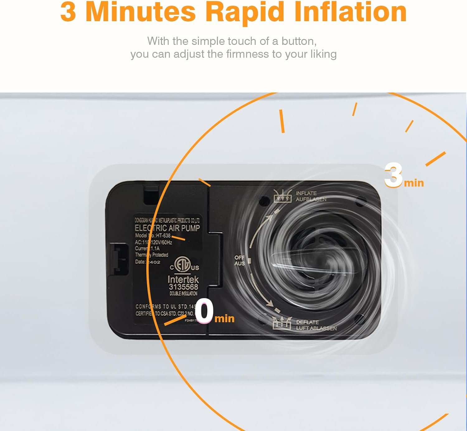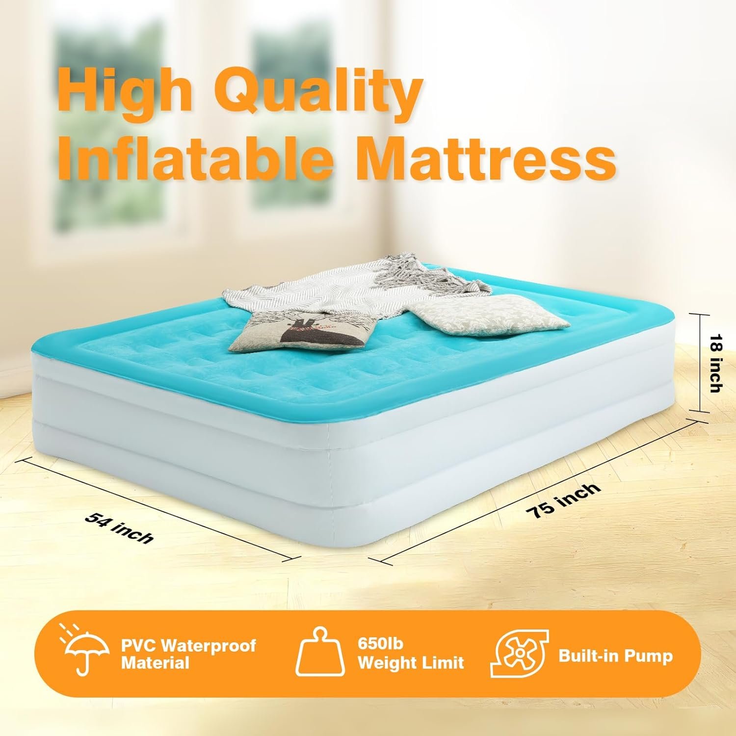Colchón de aire de 18 pulgadas tamaño matrimonial con bomba
