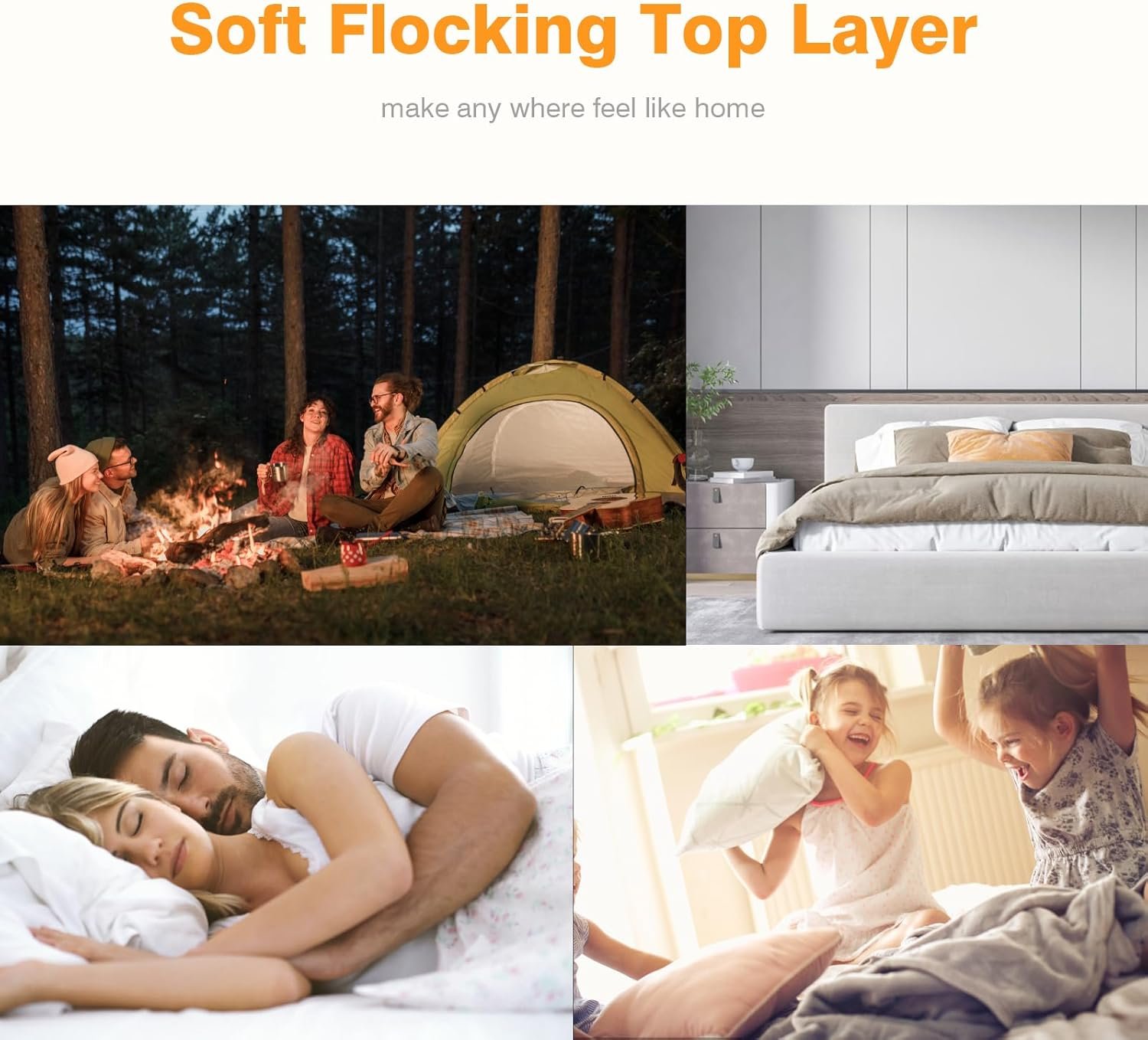 Versátil y conveniente: los colchones inflables son fáciles de instalar y quitar, lo que los convierte en una opción conveniente para cualquier persona que necesite ropa de cama adicional Comodidad personalizada: nuestros colchones inflables tienen niveles de firmeza ajustables, por lo que puedes personalizar fácilmente tu experiencia de sueño Ligero y portátil: los colchones inflables son ligeros y fáciles de empacar, lo que los hace ideales para viajeros Duradero y fiable: nuestros colchones inflables están diseñados para durar, con una estructura de doble capa y materiales de PVC resistentes a pinchazos Inflado sin esfuerzo: los colchones inflables cuentan con una bomba incorporada que permite un inflado rápido y fácil en solo unos minutos