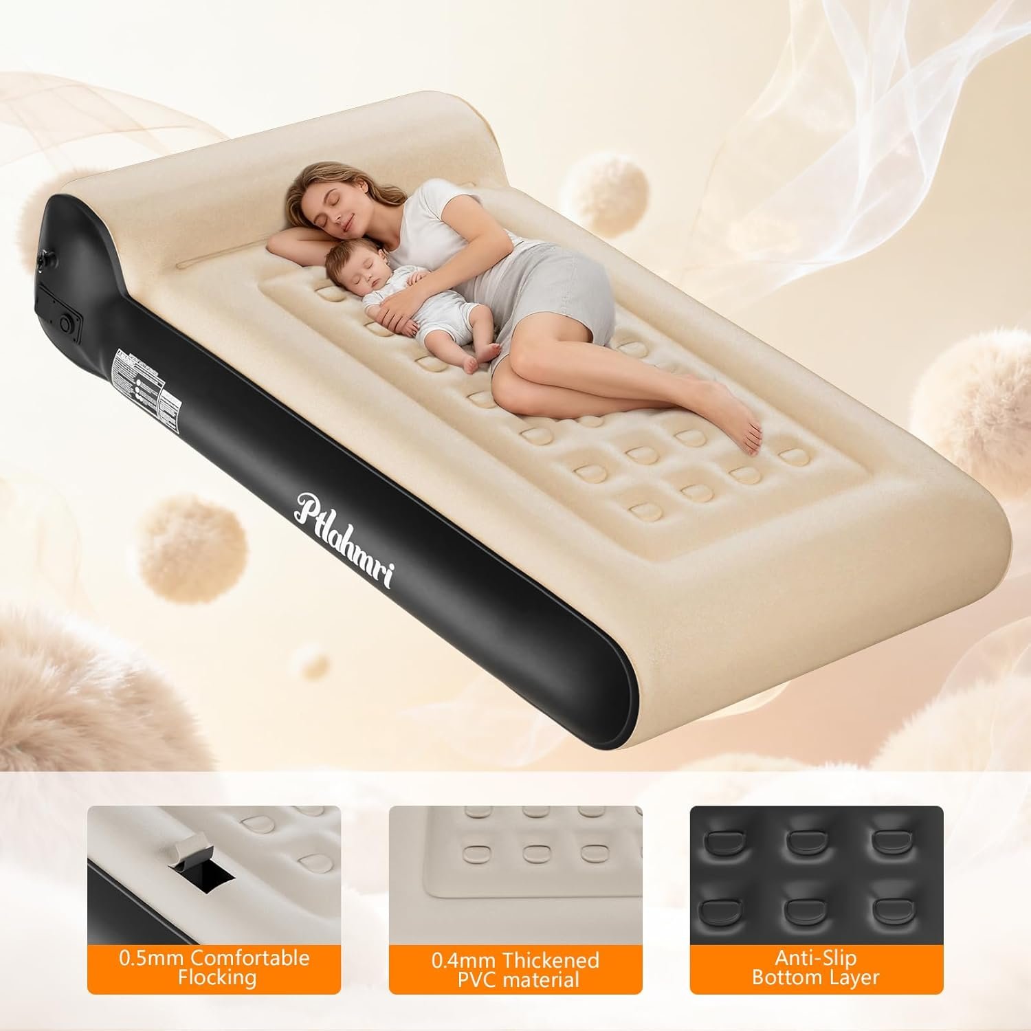 Material grueso: el colchón de aire Ptlahmri utiliza material de PVC grueso, te hace más estable y firme durante el uso, además de construcción de doble cámara, evita fugas de aire y colapsos, incluso si la cama encuentra un objeto afilado, no explotará inmediatamente, sino que liberará lentamente gas para garantizar la seguridad. Cómoda parte superior: colchón inflable. El cómodo material flocado se añade a la parte superior para hacer que el colchón inflable sea más cómodo, no es necesario añadir mantas adicionales. Además, la tela flocada tiene una función impermeable, y puedes limpiarlo directamente con una toalla. Diseño potente: el colchón de aire Queen utiliza 28 columnas de aire independientes para soportar toda la cama, garantiza la estabilidad de la cama mientras que también aumenta la comodidad del cuerpo humano. El diseño antideslizante añadido en la parte inferior hace que la cama sea muy estable y reduce el ruido, y te mantiene estacionario y estable sin importar cómo gires la cama, lo que te permite tener una noche agradable. Fácil de usar: colchón de aire de alta potencia (110-120 V) Queen con bomba integrada, con funciones de inflado y desinflado, solo necesitas conectar el enchufe a la fuente de alimentación del colchón de aire y girar el botón para comenzar a inflar o desinflar. Solo toma tres minutos completarse sin esperar mucho. Eficiencia de espacio: colchón inflable con dimensiones infladas de 203,2 cm x 152,4 cm x 40,6 cm, cuando se desinfla, el colchón de aire completo con bomba integrada mide solo 30,5 cm x 40,6 cm x 16,0 cm. Incluye una práctica bolsa de almacenamiento, conveniente para almacenar y llevar sobre la marcha, lo que lo convierte en una opción ideal para usar como cama de invitados o para viajes de campamento. Construido para durar y gracias a los comentarios de los usuarios tempranos: Basado en valiosas aportaciones de clientes, hemos abordado directamente las preocupaciones sobre fugas de válvulas y grietas en las costuras de la bomba. Este colchón de aire Queen con bomba incorporada ha sufrido una mejora significativa de durabilidad, reforzando específicamente estos puntos críticos. Ahora, puede disfrutar de la tranquilidad que viene con un colchón de aire más confiable y recientemente diseñado. Es el colchón inflable diseñado para una comodidad a largo plazo y construido para durar.