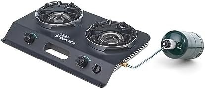 Diseñado para inspirar: equipo premium para cocinar al aire libre y aventuras Altamente portátil: diseño delgado con fácil configuración, viene en una funda de espuma con asa para un fácil transporte Cocina uniforme: diseño único de quemador de escalones y agujeros de llama añadidos Protección contra el viento: soporte de sartén para proteger del viento, asegurando una cocción ininterrumpida Iluminación inigualable: el encendido giratorio ofrece una iluminación fácil e inigualable con una potencia de 20,000 BTU Material duradero: fabricado con hierro fundido duradero que es fácil de limpiar y dura años 2 Quemadores Ajustables: Permite cocinar simultáneamente hasta 2 platos. TIEMPO DE QUEMADURA: Hasta 1 hora en alta en una 16 oz. cilindro de propano (se vende por separado)