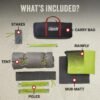La tecnología Dark Room bloquea el 90% de la luz solar para que puedas dormir después del amanecer El sistema WeatherTec mantiene el agua fuera con suelos soldados patentados y costuras protegidas Mangas de poste continuas sin enganches para una fácil instalación en cuestión de minutos Mide 10 pies x 10 pies con altura central de 6 pies Se adapta a 2 camas de aire tamaño queen E-Port hace que sea fácil llevar energía eléctrica dentro de su tienda de campaña Garantía limitada de 1 año Líneas reflectantes para una mayor visibilidad en la noche Altura central: 6 pies