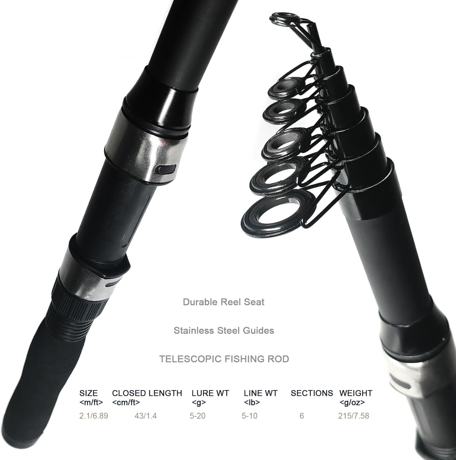 Kit de pesca completo: nuestro kit de caña de pescar incluye 2 piezas de caña de pescar de fibra de carbono + 2 carretes de pesca giratorios + bolsa de transporte + varios ganchos de señuelos de pesca + alicates de pesca Cañas de pescar de 6.9 ft/6.89 pies: cada caña mide 6.9 ft/6.9 pies construida con material de fibra de carbono de alta densidad para un rendimiento y durabilidad increíbles. El diseño telescópico y portátil permite que sea cómodo de llevar, al este para viajar Carretes giratorios potentes: el mango izquierdo y derecho del carrete de pesca giratorio es intercambiable, con rodamientos de bolas silenciosos de acero inoxidable, relación de engranajes 5.2: 1. El interruptor de parada inversa controla la rotación hacia adelante y hacia atrás de la rueda de pesca Estuche portátil para bolsa de pescar: La bolsa de pesca está hecha de nailon antiarañazos con forro impermeable, proporciona a su aparejo de pesca una protección completa. La gran capacidad tiene suficiente espacio de almacenamiento para tus aparejos para viajes y uso diario Accesorios de pesca: Este kit viene con algunos señuelos y ganchos de pesca, y unos alicates de pesca, un gran regalo tanto para principiantes como para profesionales. Es ligero y portátil, muy cómodo de llevar