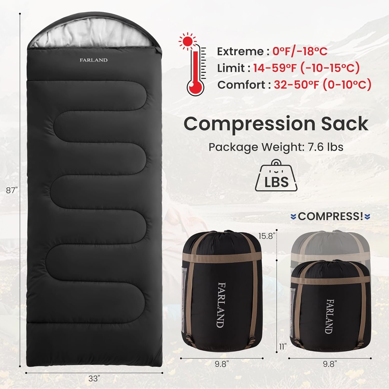 poliester Importado El material del relleno es de poliéster, el peso del paquete es de 6.7 libras, la clasificación de temperatura es de 20 grados Fahrenheit azul cielo, gris oscuro, rojo, camuflaje es la cremallera izquierda, morado naranja, verde, verde militar, es la cremallera correcta. Si no estás satisfecho, ponte en contacto con nosotros y te atenderemos hasta que estés satisfecho Siente la diferencia: los sacos de dormir súper cómodos Farland están diseñados para garantizar que después de un día agotador de senderismo, excursiones, viajes o cualquier otra exploración puedas obtener una buena y relajante noche de sueño. El diseño de control de rollo hace que plegarse sea rápido y fácil, cierra dos juntos para duplicar la habitación Diseñado para climas fríos/fríos: la temperatura de comodidad es de 32 a 50 (32.0 °F-50.0 °F). La temperatura límite recomendada es de 14 a 59 (14.0 °F-59.0 °F). Además, estas bolsas también tienen un diseño impermeable y resistente a la intemperie para mantenerte caliente incluso en condiciones extremas y evitar cualquier humedad, esto se logra a través de la tecnología de doble llenado Tamaño: el saco de dormir en forma de sobre mide 220,0 cm de largo x 83,0 cm de ancho, adecuado para adultos, adolescentes Material: material de la cubierta exterior: nailon 290T, telas impermeables y transpirables; material del forro: tela súper suave de cristal; material de relleno: fibra de poliéster. Su diseño ligero y compacto que es conveniente para llevar en cualquier aventura al aire libre, y su capacidad para soportar condiciones climáticas extremas, sin duda el mejor saco de dormir para aventuras Garantía de satisfacción 100% libre de riesgos: también te ofrecemos garantía de satisfacción 100% libre de riesgos para permitirte comprar con confianza. Sin embargo, estamos bastante seguros de que quedarás muy impresionado con su capacidad para mantenerte caliente en invierno.