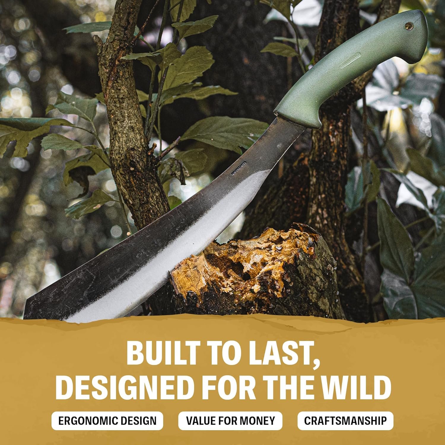 cuero 100% Hecho en EE. UU. Molienda convexa: El borde de molienda convexo de este cuchillo de machete de acero de alto carbono garantiza una dureza y retención de bordes impresionantes. Está construido para soportar trabajos difíciles como cortar árboles o vegetación densa o limpiar caminos de maleza en bosques y selvas. Diseño de estilo Parang: el diseño tradicional de la hoja de parang sobresale en cortar, rebanar y cortar, lo que lo hace ideal para bushcraft, carpintería, actividades al aire libre y supervivencia. El diseño de esta espada de machete la hace altamente funcional y una alegría de manejar. Funda de nailon balístico (BNS): hecha de nailon balístico resistente, esta funda de machete está diseñada para proteger su machete de corte mientras garantiza un cierre seguro, fácil acceso, resistencia al desgarro y durabilidad, evitando accidentes durante el uso. ACABADO NATURAL: Esto crea una estética única y atemporal que celebra su aspecto crudo e inalterado. Este diseño intencional enfatiza la individualidad del machete y lo hace atractivo y funcional tanto para los entusiastas del aire libre como para los coleccionistas. Versatilidad: La molienda convexa es una opción de diseño deliberada que mejora su rendimiento, haciéndola confiable y sobresalir en diversas tareas como cortar, actividades al aire libre, camping y jardinería. También se puede utilizar como machete militar para sobrevivir.