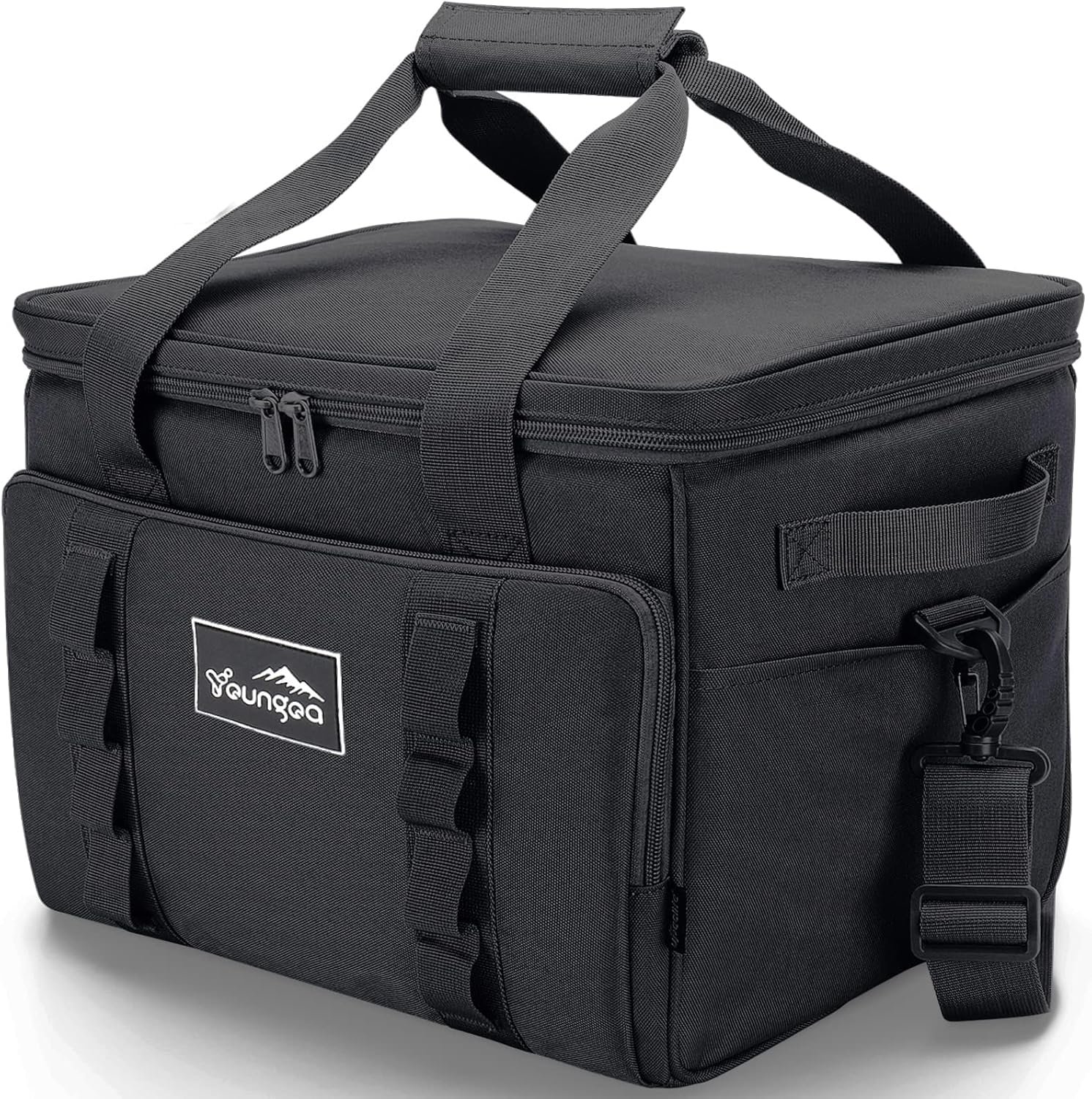 Plegable y de gran capacidad: la bolsa térmica YOUNGOA de lados suaves se puede plegar a menos de 9,9 cm, se coloca fácilmente en un espacio compacto y pequeño, ahorrando espacio. Cuando se abre, el tamaño puede alcanzar 40,0 cm de largo x 31,0 cm de alto x 26,0 cm de ancho, la capacidad es superior a 30 L, y puede contener 48 latas de 11.2 fl oz de cola Materiales de primera calidad y excelente aislamiento y a prueba de fugas: esta bolsa térmica suave está hecha de tela Oxford 900D de grado militar, que es impermeable, resistente al desgaste y duradero, núcleo interior de algodón perla EPE grueso de alta calidad, preservación del calor más duradera, forro PEVA prensado en caliente sin costuras, aislamiento, a prueba de fugas y fácil de limpiar, temperatura de bloqueo triple, excelente efecto de aislamiento térmico, mantener fresco durante más de 12 horas cuando se utiliza con bolsas de hielo Estructura y función: apertura completa de 180° para facilitar la carga y descarga, las correas Molle le permiten llevar bolsas y equipo adicionales, 1 bolsillo frontal grande para artículos más grandes como tapetes de picnic, 2 grandes bolsillos laterales abiertos para artículos más pequeños como platos de cena, aperitivos, etc. (un lado es un bolsillo de malla elástica), también hay un bolsillo con cremallera en la parte posterior para guardar objetos de valor. El diseño es simple pero funcional, elegante pero práctico Servicio íntimo: lleva tu hielera YOUNGOA con tus familiares o amigos, y disfruta de una agradable actividad al aire libre, YOUNGOA acompañará tu evento. Si tienes algún problema, háznoslo saber, te proporcionaremos una solución satisfactoria Fácil de limpiar: el forro a prueba de fugas de nuestra bolsa térmica plegable hace que la limpieza sea muy fácil. Simplemente limpia el interior con un paño húmedo y estarás listo para tu próxima aventura