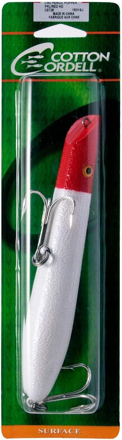 PESCA GRANDE: El señuelo para lápices viene en opciones de 6 y 17,8 cm y es conocido por señuelos ideales para peces grandes Cola pesada: el peso en el extremo de la cola del señuelo de pesca produce una acción potente y lanzamientos largos Cebo versátil: Cordell Pencil Popper original para pesca de lubina rayada, pero eficaz para todos los peces de caza grandes Resistente y duradero: señuelo construido lo suficientemente resistente como para manejar stripers, lubina, almizclado y pez rojizo TÉCNICA DE SEÑUELO DE PESCA: La técnica Walk the Dog ayuda a atraer a los peces con una acción realista