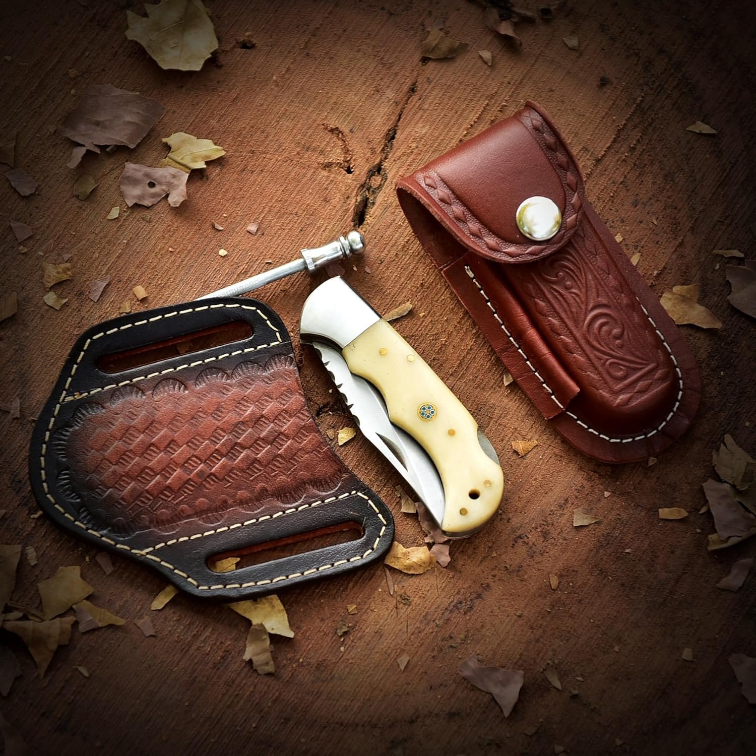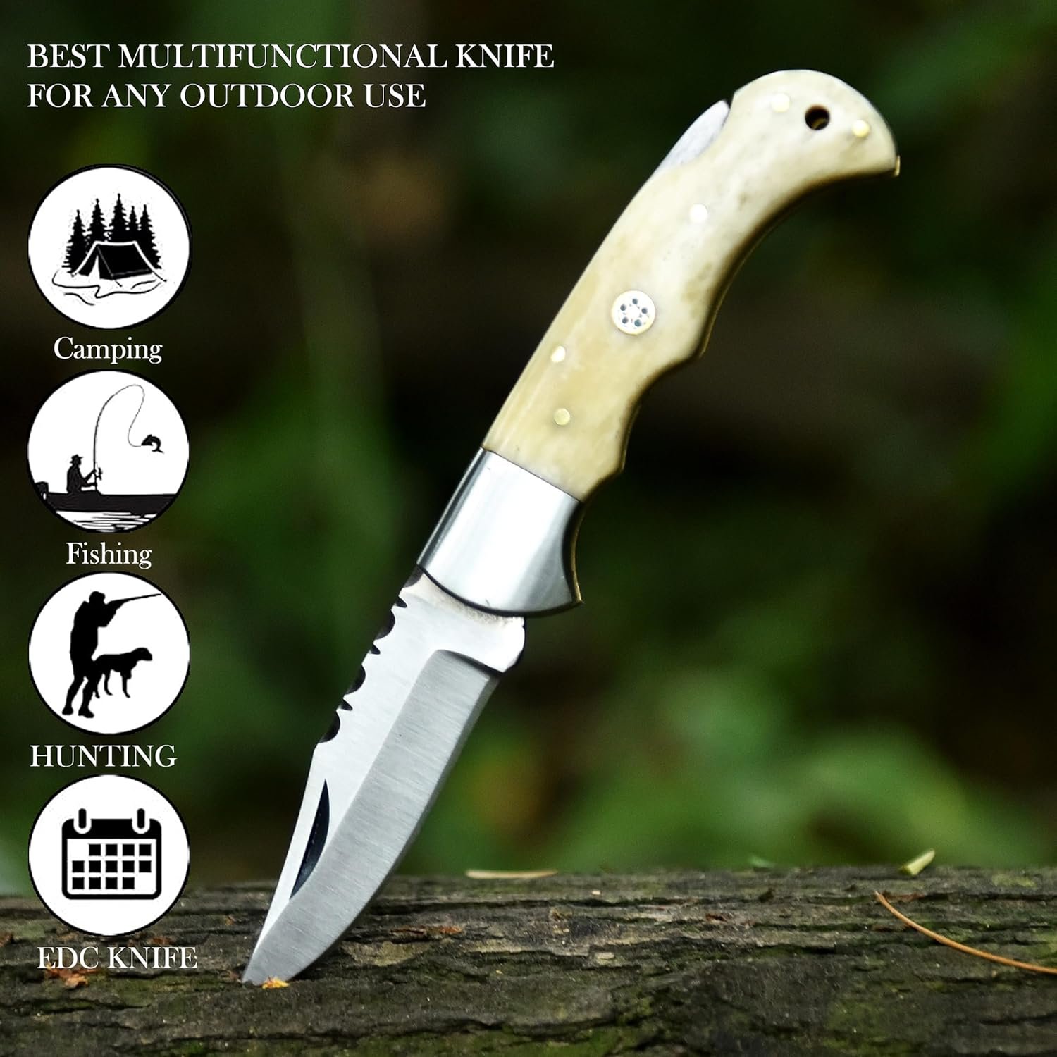 Hoja de acero inoxidable duradera: 7,6 cm de largo, resistente a la corrosión y al desgaste para un rendimiento confiable. Diseño ergonómico: el mango contorneado proporciona un agarre y equilibrio cómodos, reduciendo la fatiga en viajes de campamento. Mecanismo de bloqueo seguro: la operación fácil con una sola mano garantiza un uso seguro y conveniente. Funda de cuero premium: Funda protectora para un almacenamiento seguro y un cómodo transporte de cinturón. Compacto y portátil: 6.5 de longitud total, perfecto para el transporte diario, senderismo y aventuras al aire libre. Garantía de por vida: Respaldado por el compromiso de UA KNIVE con la calidad, asegurando años de servicio confiable.