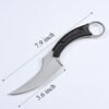 Material de alta calidad: el cuchillo de caza está hecho de acero inoxidable 440C de alta calidad con una dureza de 58-60 HRC, que es duradero y resistente al desgaste. El mango está hecho de plástico ABS duradero de alta calidad con un diseño ergonómico antideslizante, proporcionando un agarre cómodo y firme. Diseño de hoja fija: el cuchillo de caza cuenta con un diseño de hoja fija, que es más adecuado para acampar al aire libre, caza, senderismo, pesca y otras actividades al aire libre. La hoja afilada puede cortar fácilmente varios materiales, como madera, cuerda y metal. Herramienta de supervivencia multiusos: el cuchillo de caza no solo es una herramienta práctica para actividades al aire libre, sino también una herramienta de supervivencia multiusos. Se puede utilizar para cortar cuerdas, abrir latas e incluso defensa personal. El cuchillo viene con una funda Kydex para un fácil transporte y almacenamiento. Diseño ergonómico: el cuchillo de caza tiene un diseño ergonómico antideslizante, lo que lo hace cómodo de sostener y usar. El mango está diseñado para adaptarse perfectamente a la mano, reduciendo la fatiga durante el uso a largo plazo. Fácil de transportar: el cuchillo de caza viene con una funda de nailon duradera, que se puede fijar fácilmente a un cinturón o mochila. La funda no solo protege el cuchillo, sino que también proporciona una forma conveniente de llevar el cuchillo.
