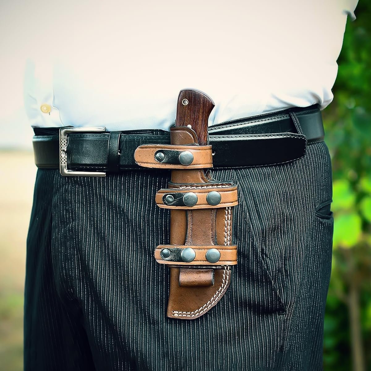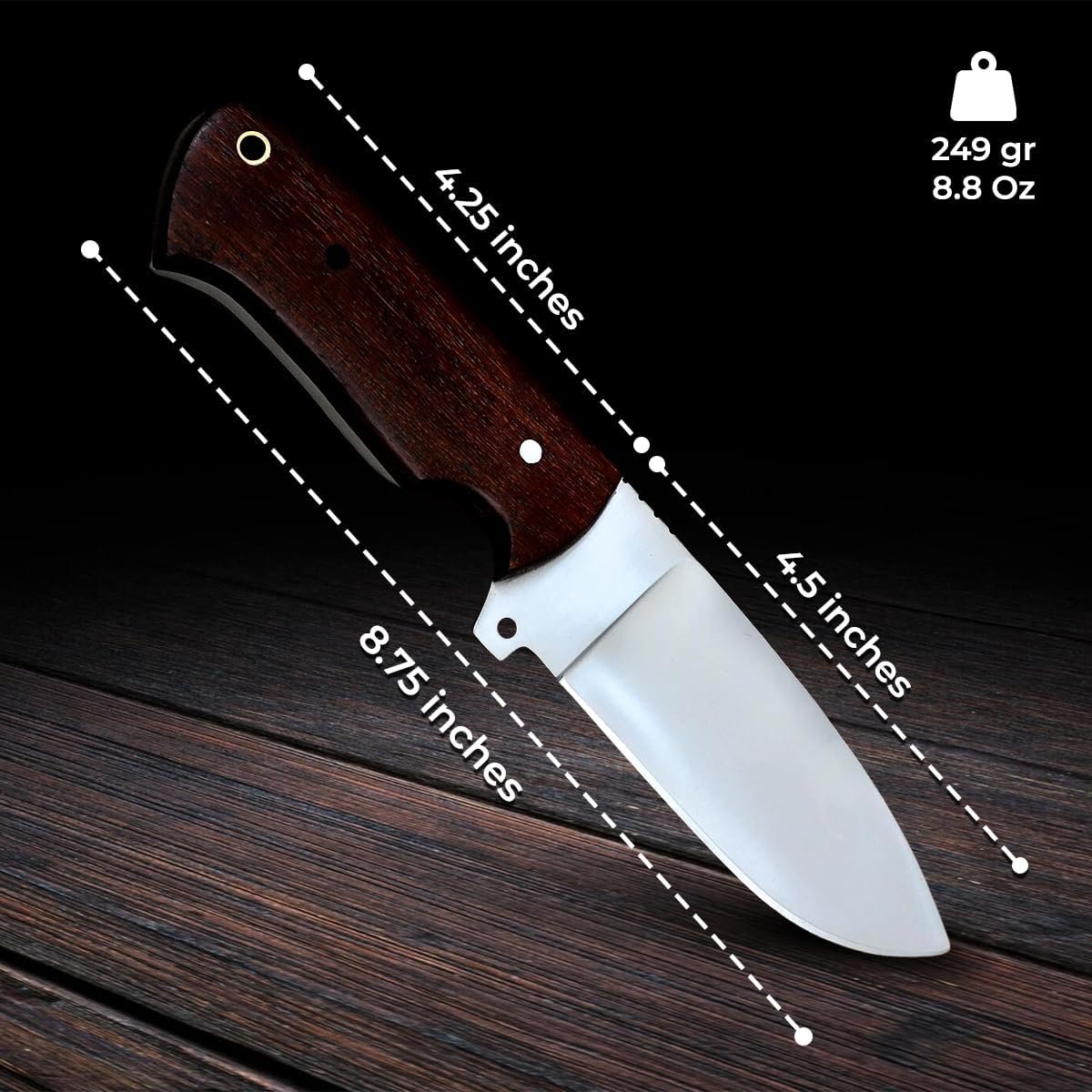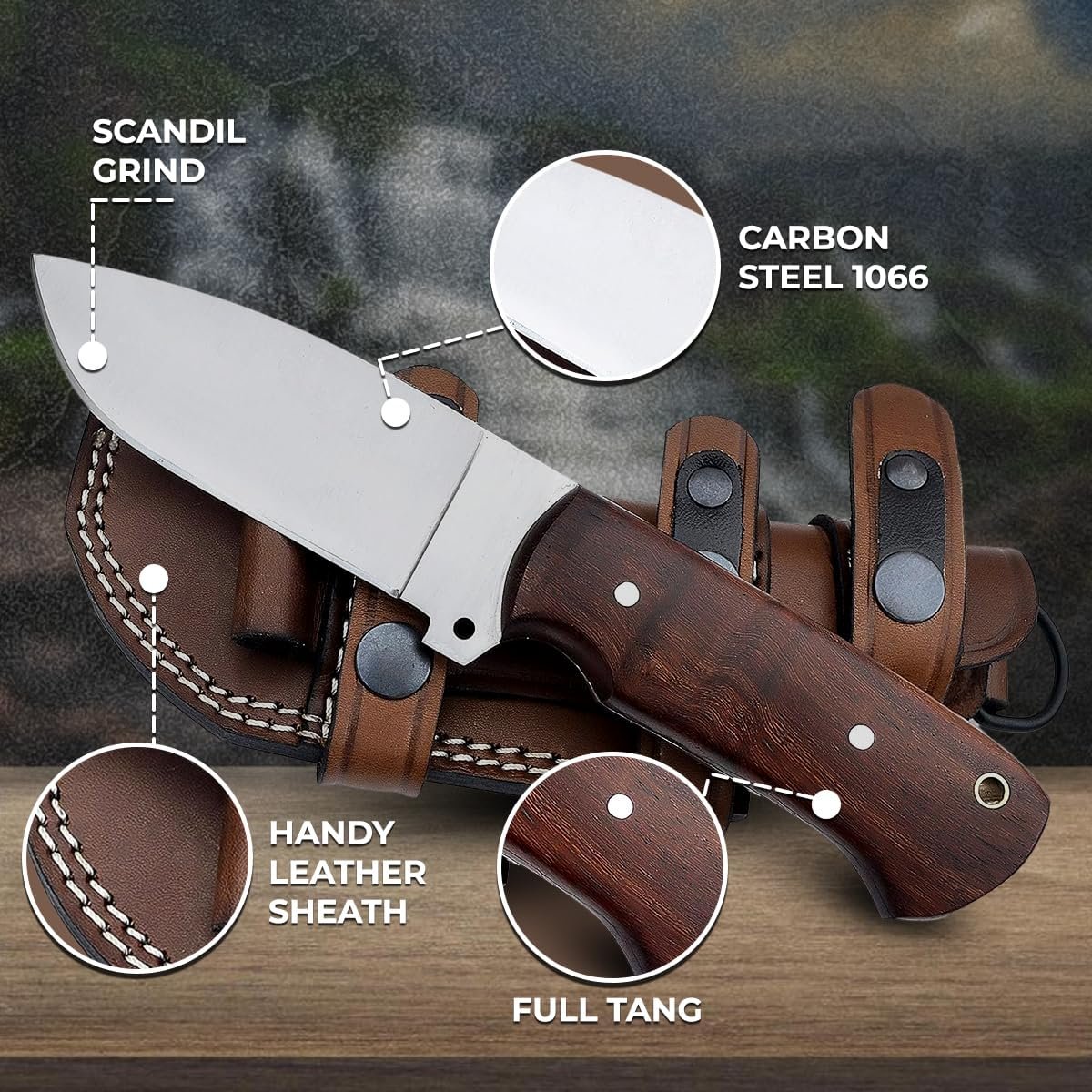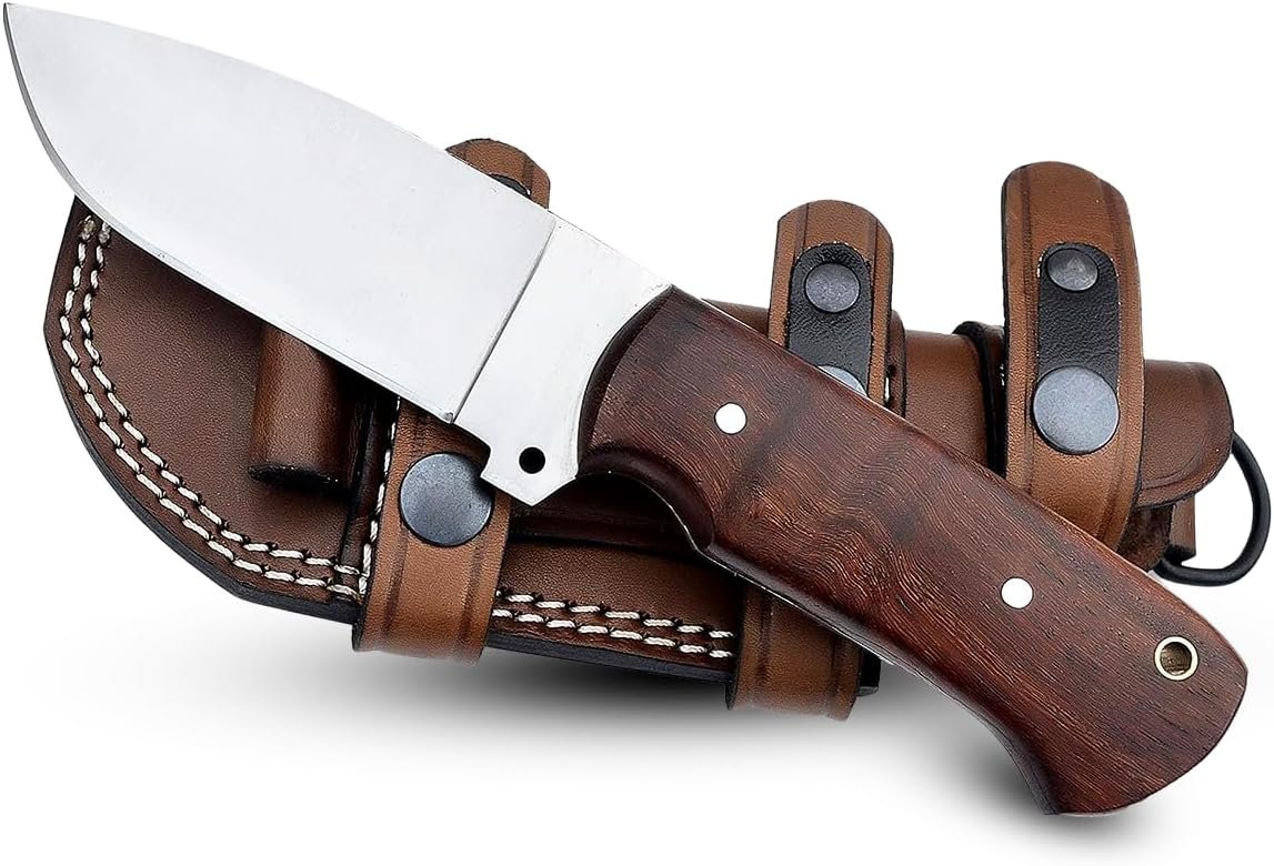 Calidad prémium: nuestro cuchillo de caza ALZAFASH está hecho de acero al carbono de alta calidad. Su hoja afilada conserva su borde de manera efectiva. El mango del cuchillo de caza está hecho de madera de rosa y tratado con aceite danés, lo que permite que este cuchillo de camping esté libre de polvo. El mango del cuchillo bushcraft está sujeto con lazos. Diseño elegante: este exclusivo cuchillo de transporte horizontal hecho a mano hará que su dueño sea privilegiado. Su mango de madera está diseñado con la máxima atención. Puedes exhibir esta hermosa pieza de arte hecha a mano. Multiusos: el cuchillo de hoja fija con mango de madera se puede utilizar para numerosas tareas mientras acampas, senderismo, caza, aunque los turistas también pueden usarlo para fines de seguridad. INSTRUCCIONES: Para mantener una excelente calidad de cuchillo de caza con funda, sigue las instrucciones de cuidado. Después de cada uso, debe aplicar una capa delgada de aceite en la hoja fija. Puede usar aceite vegetal o de oliva para evitar la oxidación. Asegúrese de enjuagar y secar el cuchillo después de su uso. Garantía de calidad: ponte en contacto con nosotros si no estás satisfecho con nuestro cuchillo bushcraft porque respetamos a cada uno de nuestros clientes.