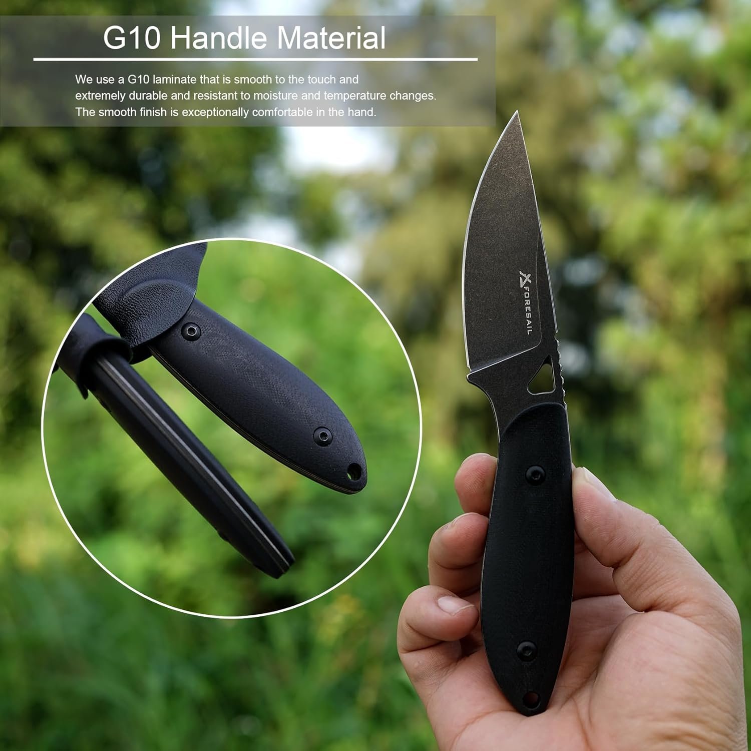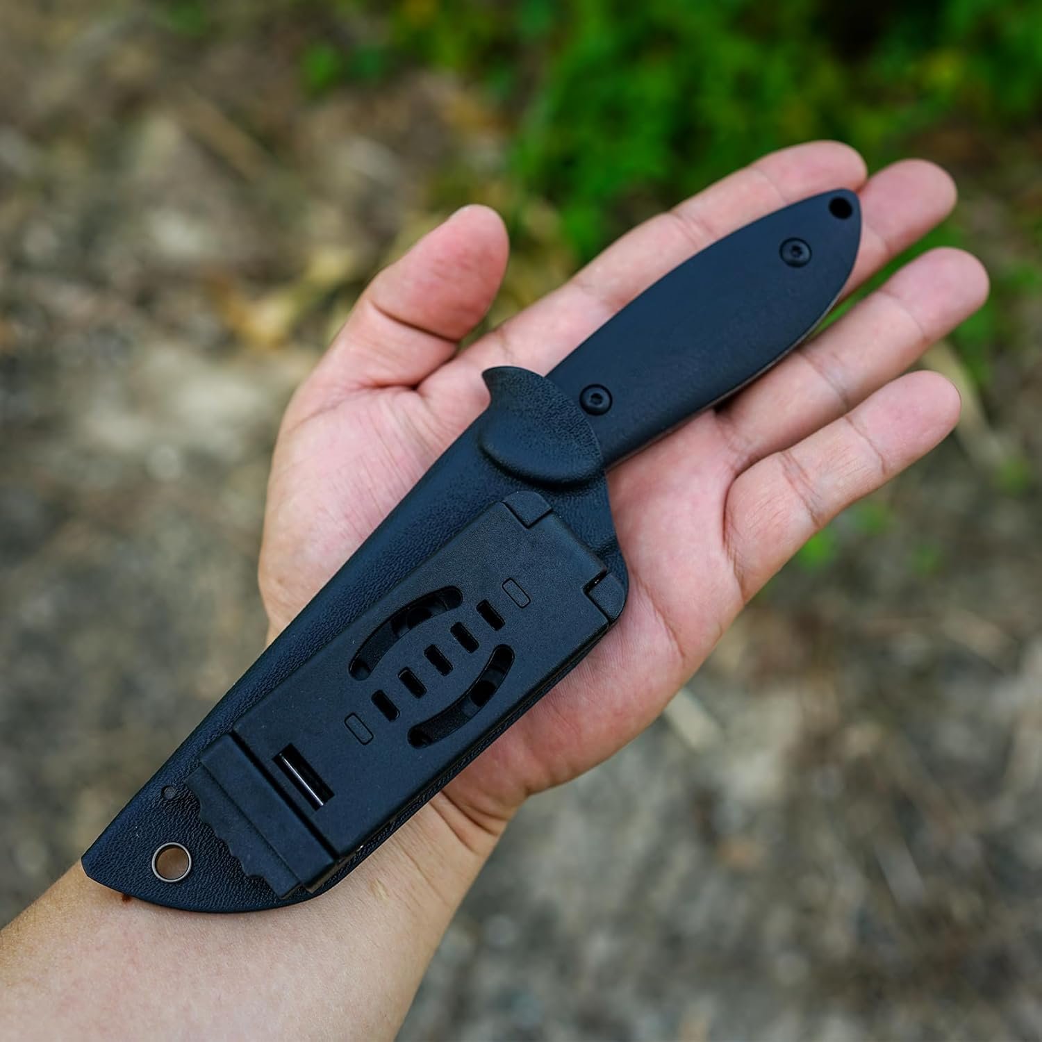 Cuchilla afilada de afeitar: este cuchillo de hoja fija de 19,5 cm está hecho de acero DC53 de alta calidad. Conocido por su excepcional nitidez y durabilidad; este cuchillo de acero maneja fácilmente varias tareas de corte y mantiene el afilado durante el uso Cómodo mango negro G10: el material del mango G10 ofrece una combinación de durabilidad y propiedades ligeras; es conocido por ser impermeable y resistente a la corrosión, lo que hace que el cuchillo de hoja fija sea adecuado para su uso en entornos hostiles; además, proporciona un excelente agarre, mejorando la seguridad y asegurando un manejo seguro del cuchillo de campamento Cuchillo de transporte diario: el cuchillo de caza de hoja fija perfecto para los entusiastas del aire libre; cuchillo de campamento con la funda Kydex negra de alta calidad, puedes mantener esta afilada durante más tiempo Tamaño perfecto: pesa solo 4.45 onzas y mide 19,5 cm de longitud total, este cuchillo es notablemente portátil. Cuchillo de hoja fija para EDC: adecuado para una amplia gama de actividades al aire libre, desde caza y campamento hasta supervivencia y uso diario, por lo que es uno de los mejores cuchillos de hoja fija para acampar y cuchillos de caza con funda