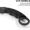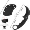 Cuchillo Karambit resistente: este cuchillo táctico de karambit cuenta con una hoja curvada de espiga completa de estilo garra hecha de acero inoxidable 420C, que ofrece una excelente retención de bordes, resistencia a la corrosión y un rendimiento confiable para la supervivencia al aire libre, la autodefensa y las tareas diarias. Dimensiones de la hoja fija Karambit: longitud total 18,0 cm, con longitud de hoja 7,1 cm, longitud del mango 9,9 cm, pensamiento de la hoja: 0,5 cm, longitud de la vaina: 13,2 cm, peso total del cuchillo solo 0.585 libras. Agarre cómodo: el mango G10 de diseño ergonómico ofrece una excelente dureza y resistencia a la corrosión, proporcionando un agarre cómodo, agarre seguro y fácil manejo. Este cuchillo de garra tiene un anillo en el mango para facilitar el agarre hacia adelante y hacia atrás. Cuchillo EDC versátil: un cuchillo compacto y confiable de hoja fija edc que es perfecto para el transporte diario. Ya sea que estés haciendo senderismo, acampando o sobreviviendo al aire libre, siempre está listo cuando lo estés. Múltiples opciones de transporte: incluye una funda Kydex ligera con un clip universal que permite un transporte horizontal o vertical. Los espaciadores ajustables te permiten ajustarlo a casi cualquier tamaño de cinturón, lo que hace que este cuchillo sea fácil de llevar donde quiera que vayas.
