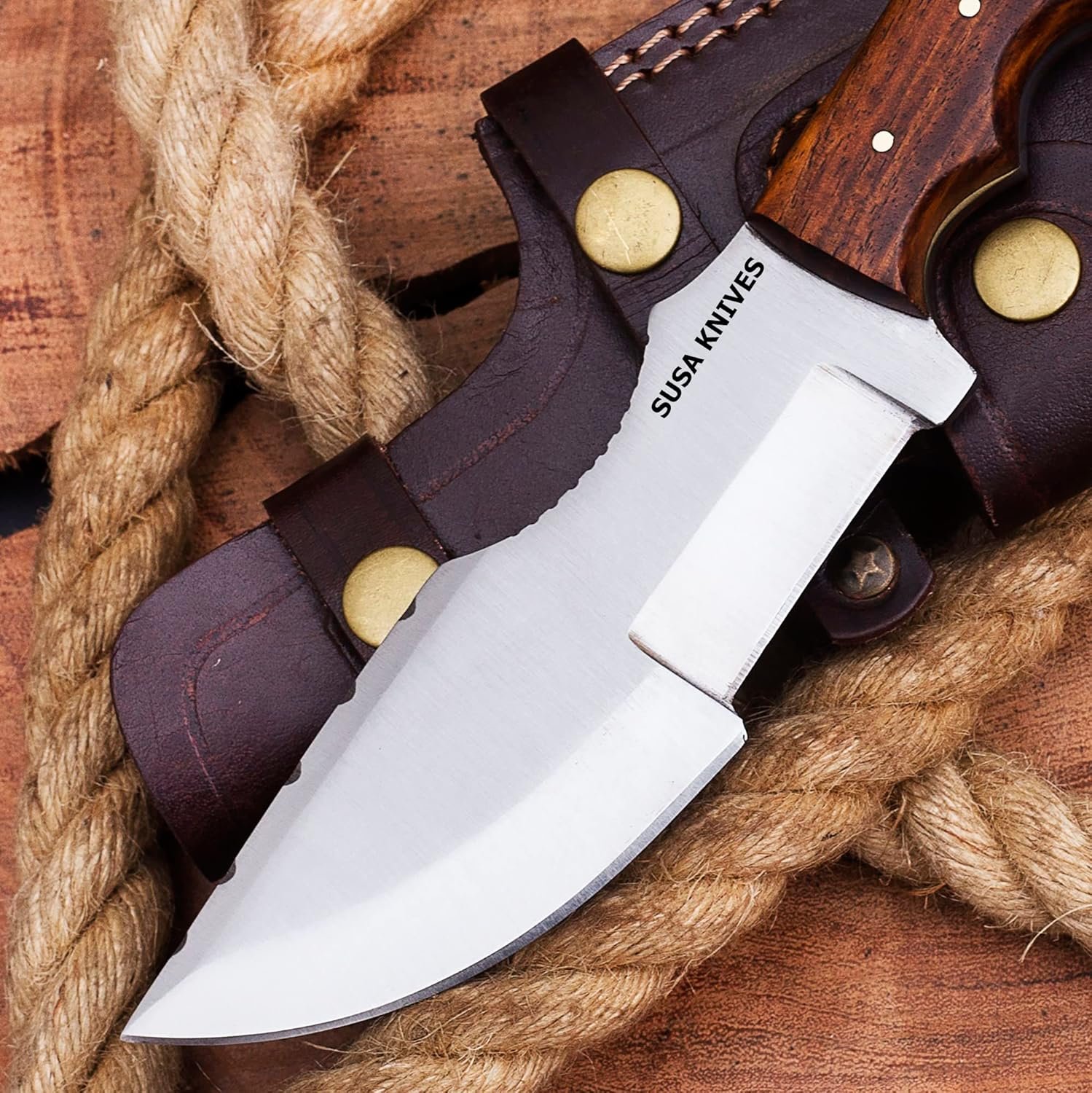 Nombre del modelo: Increíble cuchillo de caza hecho a mano de acero D2 personalizado Mango de madera natural de Rose
