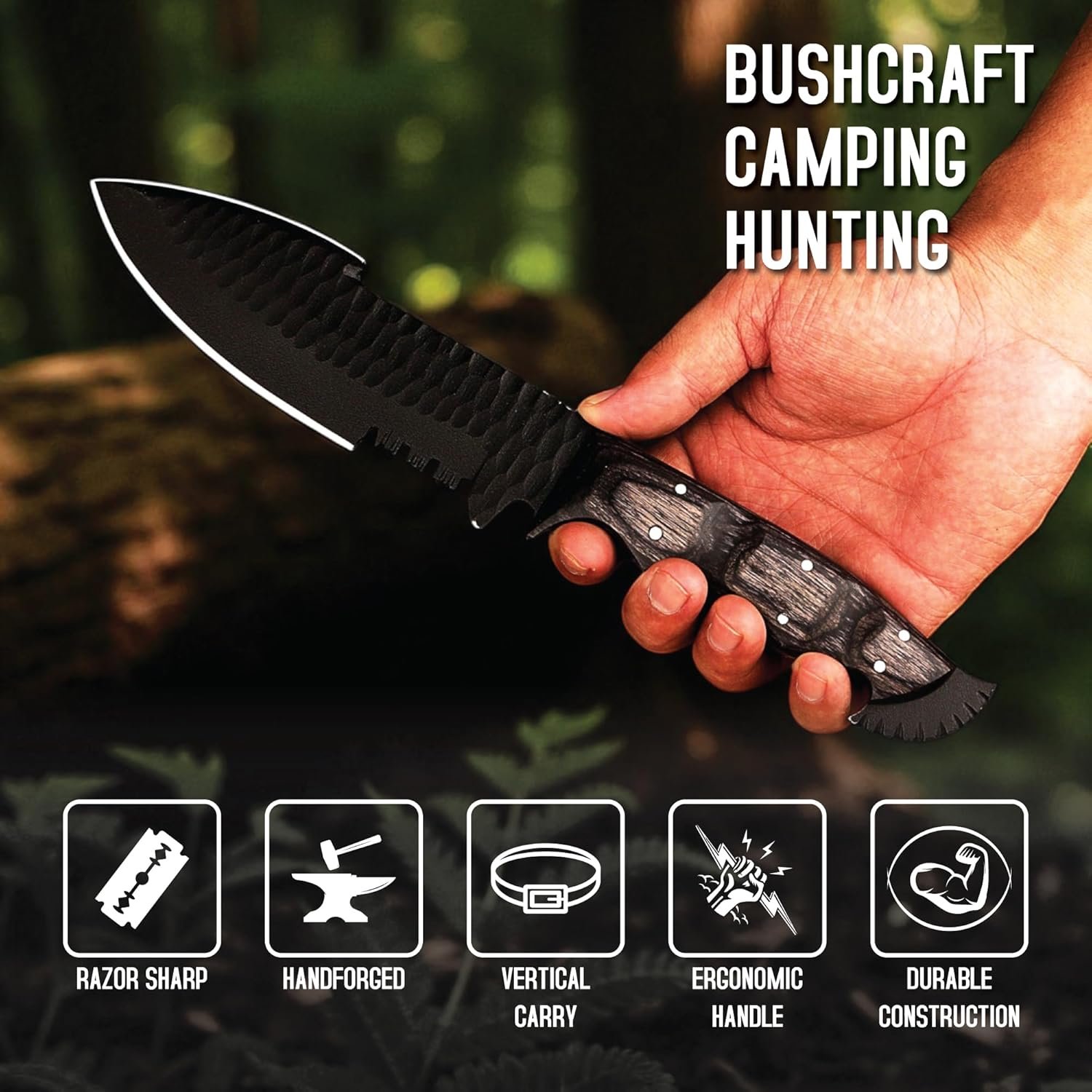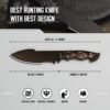 Construcción premium: cuchillo rastreador de 27,9 cm con una hoja de acero de alto carbono de 15,2 cm con recubrimiento en polvo duradero para una resistencia superior a la corrosión Mango ergonómico: mango de madera Pakka contorneado de 12,7 cm que ofrece un excelente control de agarre y resistencia a la humedad mientras mantiene la estética clásica DISEÑO VERSÁTIL: Cuchillo multiusos ideal para caza, desollar, acampar, tareas de supervivencia y aplicaciones de artesanía en bushcraft ACCESORIOS INCLUIDOS: Viene completo con una funda de cuero a juego para un almacenamiento seguro y un transporte cómodo durante las actividades al aire libre Calidad artesanal: cada cuchillo muestra artesanía experta con atención al detalle, perfecto tanto para uso práctico como para exhibición de colección