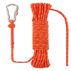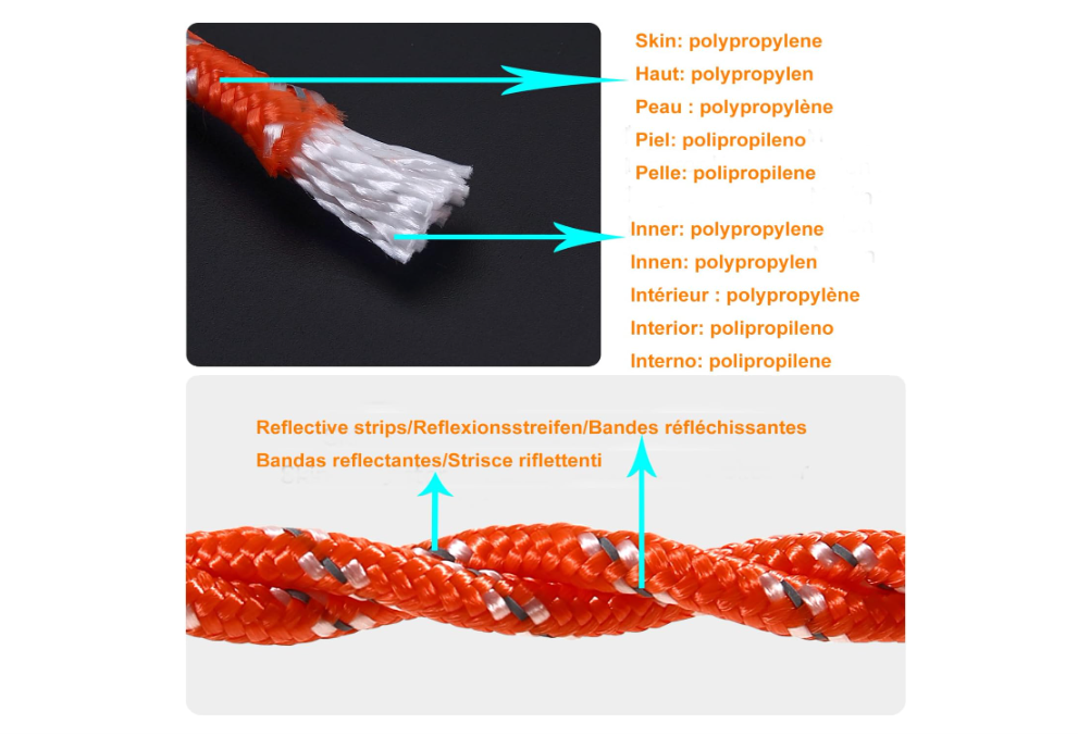 - Esta cuerda naranja está hecha de polipropileno de alta resistencia, núcleo interior de alta resistencia. Fuerza de tracción definitiva: 6KN (1,348 libras, 1,322.8 lbs); fuerza de tracción de trabajo: 4,5 KN (1,011 libras, 992.1 lbs); diámetro: 5/16 pulgadas (0.315 in); Longitud del cable: 98 pies (98.4 ft); naranja reflectante exterior.