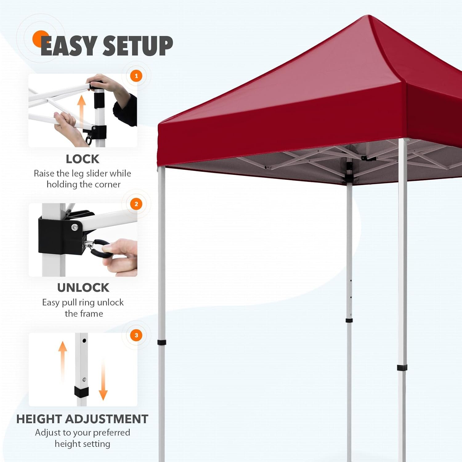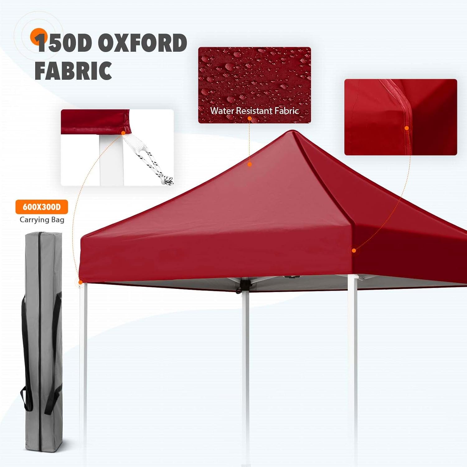 Bolsillo de malla integrado: esta tienda de campaña portátil cuenta con un práctico bolsillo de malla integrado. Puedes poner tu teléfono, llaves, gafas o pequeños dispositivos en él. Calidad superior: la parte superior del toldo de tela Oxford 150D resistente al fuego CPAI-84 es resistente al agua y ofrece una protección solar superior UPF 50+ UV. Está hecho de acero recubierto de polvo, resistente al óxido, de alta calidad ensamblado con montaje reforzado con perno pasante endurecido M5. Compacto y portátil: el transporte es fácil con el diseño ligero de este toldo y su bolsa de transporte de tela Oxford 300x600D incluida. Perfecto para marketing, fiestas al aire libre, eventos deportivos, campamentos o eventos de recreación, esta es la solución de sombra ideal para tu próximo día de diversión bajo el sol Fácilmente ajustable: las patas inferiores ajustables de 3 pines te permiten ajustar el ángulo y la altura de tu tienda de campaña para maximizar la sombra durante todo el día. Proporciona 25 pies cuadrados de sombra, suficiente espacio para que hasta 2-3 personas se sienten debajo del dosel. EAGLE PEAK Promesa: EAGLE PEAK ofrece una protección posventa limitada de 1 año desde la fecha original de compra. A diferencia de muchos otros fabricantes de toldos, EAGLE PEAK ofrece esto para nuestros marcos, toldos y bolsas. Si tiene alguna otra pregunta, comuníquese con nuestro equipo de servicio profesional.