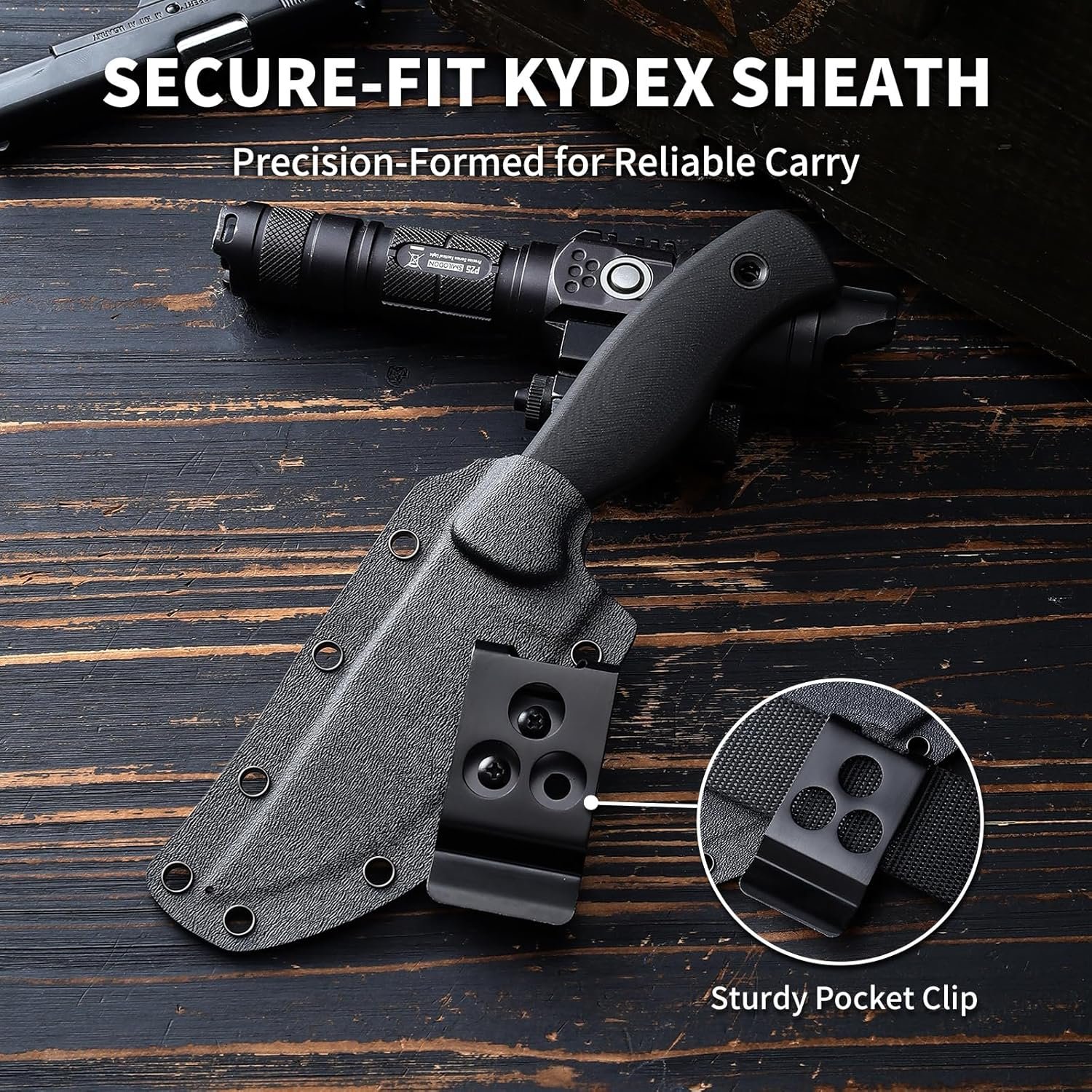 Mango ergonómico G10: este cuchillo cuenta con un mango G10 duradero y resistente a la corrosión con un diseño texturizado y ergonómico para un agarre seguro y antideslizante, ideal para condiciones húmedas o duras mientras reduce la fatiga de la mano durante un uso prolongado. Hoja de acero DC53 de alto rendimiento: forjada a partir de acero de matriz DC53 premium, la hoja ofrece una retención excepcional de nitidez, durabilidad y resistencia al óxido, ideal para aplicaciones de corte exigentes. Funda protectora Kydex: viene con una funda Kydex moldeada duradera para un almacenamiento seguro y fácil de transportar, por lo que es ideal para actividades al aire libre y uso diario. Práctica hoja de punto de caída: la versátil hoja de punto de caída sobresale en la perforación y corte controlado, con un lomo robusto para mayor resistencia durante tareas como procesamiento de madera o preparación de alimentos. Dimensiones optimizadas: Hoja: 9,9 cm (100 mm) | Total: 22,4 cm (225 mm) | Grosor de la hoja: 0,4 cm (4.0 mm) | Peso: 7.20 oz. Una herramienta ligera pero resistente para diversas aplicaciones.