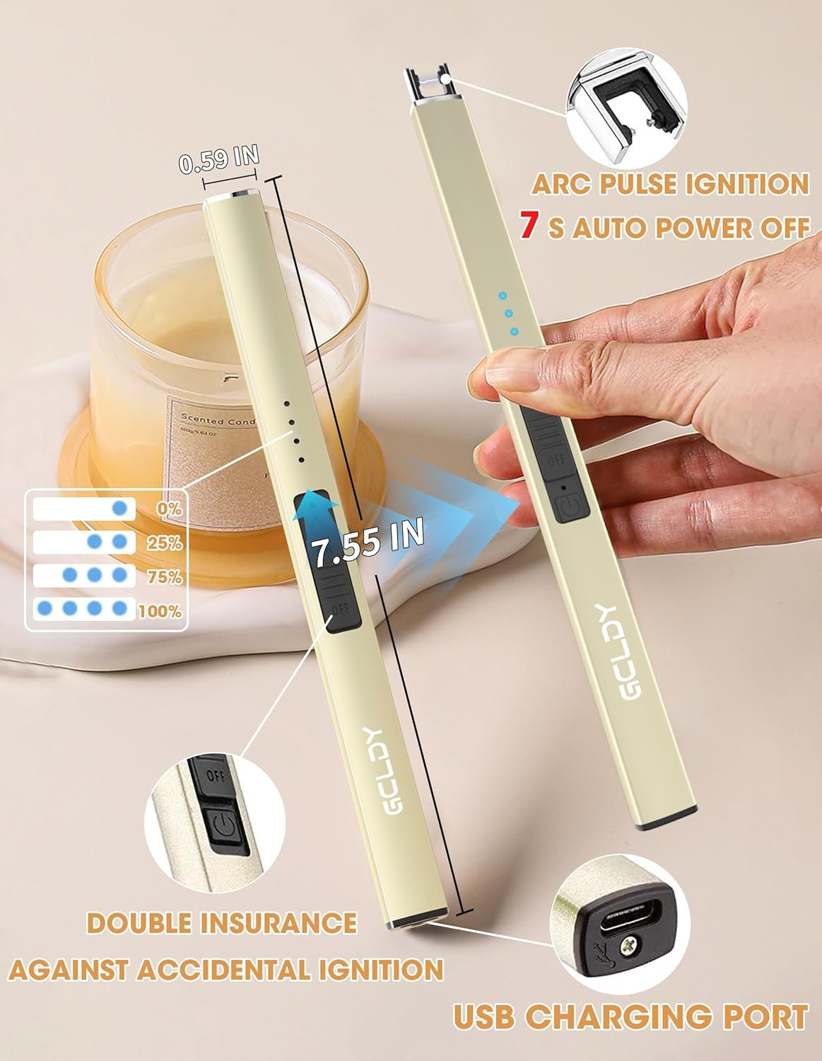 Elección de regalo perfecta: el encendedor de velas Gcldy sirve como un regalo práctico para los entusiastas de las velas, por lo que es un regalo ideal para ocasiones como el Día de la Madre, Día del Padre, Día de San Valentín, cumpleaños, aniversarios, Halloween y Navidad. Ya sea para personas que disfrutan de fuegos artificiales, varias velas, barbacoas, camping o senderismo, este encendedor eléctrico recargable promete traer alegría. Su práctica lo convierte en una excelente opción de regalo para entusiastas del aire libre, excursionistas, aficionados a las velas, chefs y cualquier otra persona. Adecuado para intercambios de regalos de elefante blanco y rellenos de calcetines de Navidad para mujeres, hombres, adultos, esposas, madres, familias y amigos, ofreciendo practicidad y diversión. Encendedor eléctrico mejorado con bloqueo de seguridad: el encendedor de velas eléctrico Gcldy cuenta con un sistema de seguridad multicapa para garantizar que estés completamente protegido. Este completo sistema de seguridad incluye baterías de seguridad certificadas, un bloqueo de seguridad, apagado automático de 10 segundos, tecnología de chip inteligente, protección contra cortocircuitos y protección contra sobrecargas y sobrecalentamiento. La función de bloqueo de seguridad evita la ignición accidental por parte de los niños. Cuando el encendedor no está en uso, la cabeza del encendedor se oculta internamente. Económico y ecológico: un solo encendedor eléctrico, equivalente a 300 encendedores tradicionales, ofrece una solución rentable y respetuosa con el medio ambiente. Equipado con un indicador de alimentación de 4 LED para monitoreo de batería en tiempo real, este encendedor se puede utilizar hasta 600 veces con una sola carga, proporcionando comodidad y eficiencia. En comparación con los encendedores y fósforos convencionales, ofrece una manera más segura, rápida y fácil de encender velas, chimeneas, fuegos artificiales y más, sin llamas, dedos quemados o butano dañino. Encendedor de arco de plasma a prueba de viento: encendedor USB recargable largo Gcldy con tecnología de plasma sin llama, este encendedor eléctrico sobresale en vientos fuertes y condiciones húmedas, por lo que es un compañero ideal para actividades al aire libre. Soporte postventa excepcional: Si surge algún problema, no dude en comunicarse con nosotros. Estamos comprometidos a resolver tus preocupaciones rápidamente en 24 horas, asegurando tu satisfacción continua con nuestros productos.