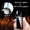 Encendedor electrónico de llama de chorro 2 en 1, recargable