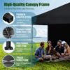 Construcción de alta calidad: marco duradero de alta calidad, recubierto de polvo para resistencia al óxido. Cuenta con un diseño único que elimina la necesidad de barras transversales que atraviesan el medio del toldo, maximiza el espacio libre dentro del toldo. Usted y sus invitados disfrutarán de una sensación amplia y abierta debajo del dosel, libre de obstrucciones. Protección y comodidad inigualables: el innovador diseño superior ventilado promueve un mejor flujo de aire dentro del toldo, reduciendo eficazmente la acumulación de calor. Hecho de material de poliéster extragrueso, ofrece una solución robusta y duradera. Con una calificación de protección UV UPF 50+, este toldo te protege de los dañinos rayos del sol, asegurando un tiempo seguro y agradable al aire libre. Además, cumple con el estándar CPAI-84, NFPA 701 y ULC S109 US para resistencia al fuego, priorizando su seguridad. Configuración suave: manera fácil y fuerte de fijar la cubierta al marco con correas. La configuración es fácil y solo toma minutos sin ningún problema. No requiere herramientas. Utiliza botones sin pellizcos para ajustar cómodamente la altura de la pierna: 6.1 pies, 6.4 pies, 6.7 pies, proporcionando la flexibilidad para adaptar el toldo a tus necesidades específicas. Este diseño fácil de usar agiliza el proceso de configuración, lo que te permite tener tu toldo listo en poco tiempo. Varias ocasiones: lugar de sombra temporal para una variedad de entornos y actividades. Ya sea que estés organizando un evento, disfrutando de un picnic o participando en cualquier actividad al aire libre, nuestro toldo garantiza que te mantengas fresco, protegido y a gusto durante todo el día. El paquete incluye: 1 marco de toldo de 10 x 10 pies + 1 cubierta superior de dosel + 1 protector solar de dosel + 1 bolsa de transporte con ruedas de diseño único Eurmax + 4 bolsas de pesas (sin arena). Con este paquete completo, tendrás todo lo que necesitas para crear un espacio cómodo y protegido para una amplia gama de eventos al aire libre.