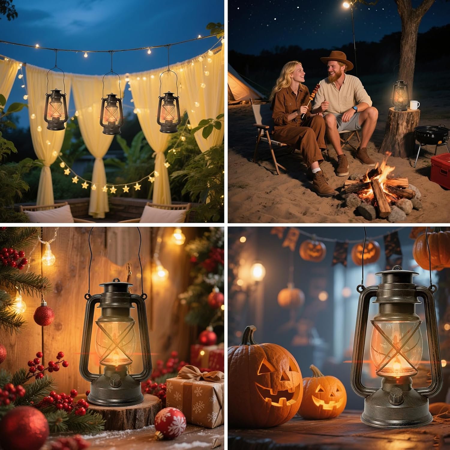 Diseño atemporal: las linternas LED vintage combinan una encantadora estética vintage con tecnología LED moderna, por lo que son una hermosa adición a cualquier entorno interior o exterior. Linterna colgante para exteriores, impresionante adición tanto a decoración interior como exterior. Iluminación decorativa versátil: ya sea que estés decorando un porche, patio o jardín, organizando una fiesta al aire libre, acampando bajo las estrellas o buscando una decoración interior elegante, estas linternas para porche son la gran solución. Impresionante efecto decorativo: la mecha de llama de las linternas con efecto decorativo para exteriores crea un ambiente acogedor, mejorando tus reuniones y añadiendo un toque de nostalgia a la decoración de tu hogar. Comodidad que funciona con pilas: disfruta de una iluminación sin complicaciones con estas linternas que funcionan con pilas, proporcionando la flexibilidad para colocarlas en cualquier lugar sin la necesidad de tomas de corriente (ten en cuenta que las baterías no están incluidas) Durabilidad resistente a la intemperie: fabricada con materiales impermeables, esta linterna para exteriores está diseñada para soportar los elementos, por lo que es perfecta para su uso en tu porche, patio o durante viajes de campamento, asegurando que tus reuniones permanezcan brillantes y acogedoras sin importar las estaciones.
