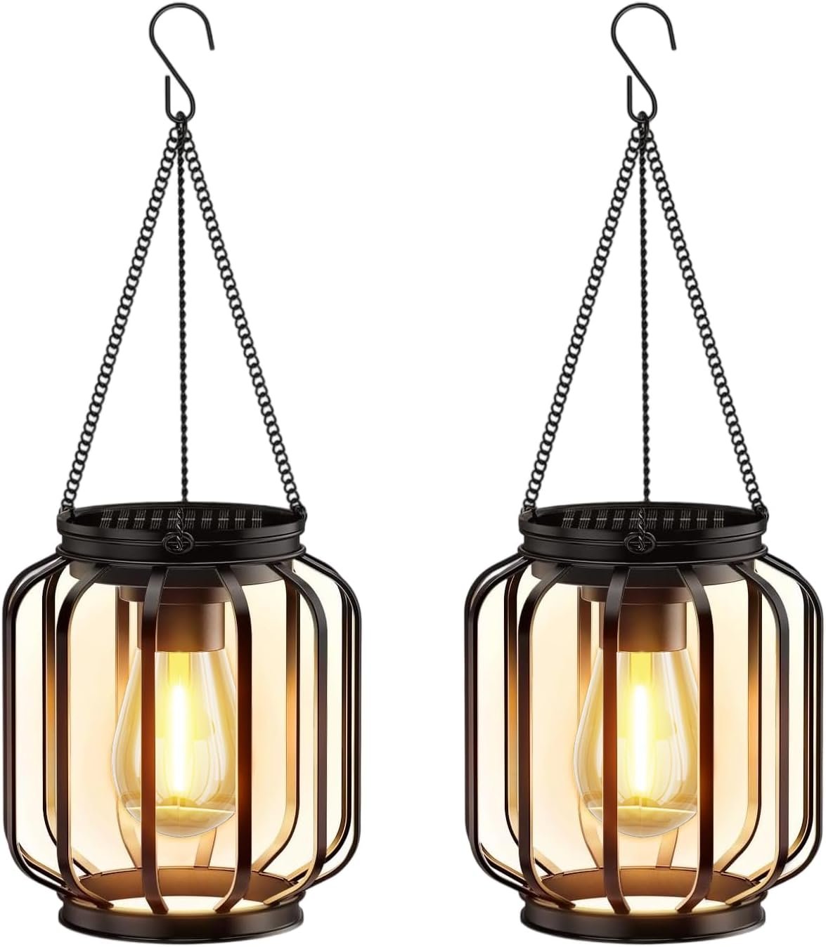 Faroles solares impermeables para exteriores, paquete de 2 l
