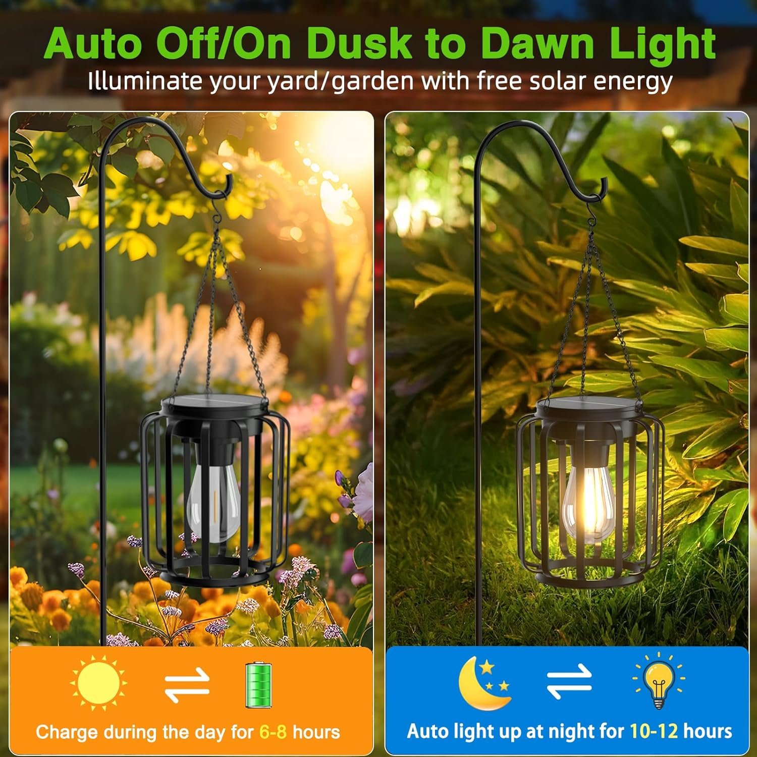 Diseño vintage y resistencia a la intemperie: Con una forma columnar retro con un marco de metal e iluminación cálida, esta linterna solar agrega un encanto elegante a los jardines. Con clasificación de impermeabilidad IP65, resiste la lluvia, la nieve y las heladas para uso en exteriores durante todo el año. Carga solar eficiente y encendido/apagado automático: equipado con un panel solar mejorado, la luz captura la luz solar de manera efectiva para una potente conversión de energía. Se carga durante el día y se enciende automáticamente al anochecer, proporcionando una iluminación sin complicaciones. LED de larga duración y tiempo de funcionamiento extendido: alimentado por una batería recargable de 1.2V/800mAh y bombillas de filamento LED mejoradas, ofrece una iluminación brillante y eficiente de energía hasta 12 horas después de solo 6-8 horas de carga. Construcción de metal duradero: hecho de hierro de alta calidad con tratamiento antioxidante, esta linterna garantiza durabilidad estructural y rendimiento a largo plazo en varias condiciones al aire libre. Regalo ideal para los amantes del jardín: perfecto para decorar caminos, patios o paisajes, esta linterna solar es un regalo maravilloso para vacaciones, cumpleaños o entusiastas de la jardinería.