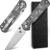 · · · KNIFE SPECIFICATIONS: Overall Length: 7.87 cm(20cm); Blade Length:3.35» cm(8.5cm); Handle Length: 4.53 cm(11.5cm); Blade Width: 0.98 cm(2.5cm); Blade Thickness:3mm; Weight of Knife(Net Weight): 4.41 Ounce OR 125 grams. · · · AUS-10 Steel Blade Knife : Made of AUS-10 (60-61 HRC) high-carbon stainless steel for superior edge retention and corrosion resistance. Precision-ground blade with a clean, polished finish for smooth cutting performance. Thick, heavy-duty blade delivers strength for demanding tasks while maintaining sharpness. Holds an edge exceptionally well, yet remains easy to maintain with standard sharpening tools. · · · Carbon Fiber Handle Knife: Carbon Fiber Handle Ensures a secure and confident grip during use and comfortable in-hand feel, easy operation Carbon Fiber is insulation, good abrasion resistance, moisture proof, anti-slip. · · · Ultimate Outdoor Companion Lightweight & portable design. Rugged yet elegant styling. The high-quality ball bearing pivot structure makes operation flexible. Ideal for hunting, camping, survival Quick-access for outdoor adventures. · · · An Excellent Gift! We Offer this unique Real AUS-10 Steel Folding Knife to a special friend, with pocket clip easily taking for Men or Women, make this amazing gift to any seasoned or amateur handmade knife collector and enjoy their smile upon unwrapping this fascinating gift!