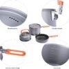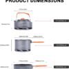 Juego todo en uno: todos los componentes, incluyendo una olla con tapa (tamaño: 1,5 l), una tetera con tapa (tamaño: 0,8 L) y una sartén (tamaño: 0,7 L) se pueden empacar perfectamente en un pequeño juego de camping, es súper compacto e ideal para 2-3 personas de campamento y mochila. Hervido rápido: diseñado con tecnología de intercambiador de calor, el juego de cocina Fire-Maple Feast permite un ahorro del 30% en tiempo de ebullición. Resistente al calor: cuenta con un mango único de FIREMAPLE FIREMAPLE, este juego de utensilios de cocina para acampar es bloqueable y fácil de usar. Sartén antiadherente, libre de PFOA. Con un revestimiento antiadherente de alta calidad, la sartén puede adaptarse a tus necesidades de cocción más exigentes, también es fácil de limpiar. Construido para durar: construido con aluminio anodizado duro, este juego de cocina es duradero y garantiza años de uso.