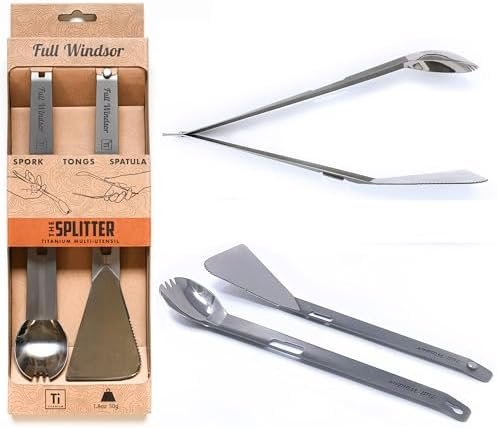 Diseñado para el entusiasta del aire libre: el juego multiutensilios de titanio Splitter está diseñado para soportar los elementos, hecho de titanio ultraligero pero increíblemente duradero. Ya sea que estés cocinando a fuego abierto o a la parrilla, este juego está hecho para durar todas tus necesidades de cocina al aire libre mientras mantiene el peso al mínimo. HERRAMIENTA DE CAMPING TODO EN UNO: No hay necesidad de múltiples utensilios cuando tienes el divisor. Esta herramienta multifuncional combina una espátula, tenedor largo y pinzas en un juego compacto, lo que te da todo lo que necesitas para cocinar, servir y comer, todo en un utensilio fácil de transportar. Compacto y listo para usar: diseñado pensando en la comodidad, el divisor es ligero y fácil de empacar, mide solo 25,4 cm x 5,8 cm x 3,3 cm y pesa solo 1.8 onzas. Ya sea que estés de mochilero, senderismo o en un viaje por carretera, este juego de utensilios cabe perfectamente en tu bolsa sin ocupar un espacio valioso. Elegante pero funcional: el divisor combina un diseño elegante con funcionalidad. Su aspecto minimalista no solo sirve para un propósito estético, cada pieza está cuidadosamente diseñada para un fácil manejo y máxima eficiencia de cocción, por lo que es una parte elegante y esencial de tu kit de cocina al aire libre. Simple y sostenible: el divisor es una excelente alternativa a los utensilios desechables, lo que te permite disfrutar de comidas al aire libre mientras eres consciente de tu impacto. Ligero y duradero, este juego es ideal para todas las actividades al aire libre y proporciona una solución práctica para aquellos que quieren minimizar los residuos.