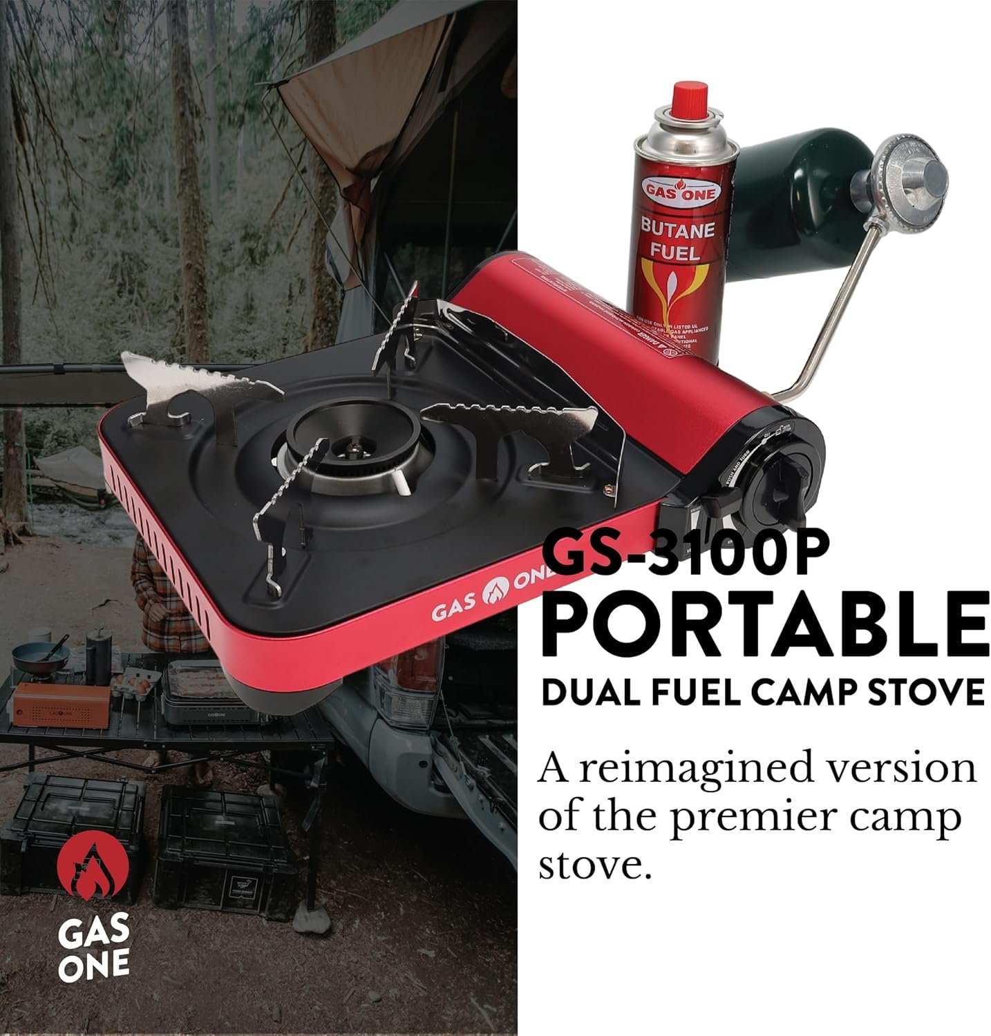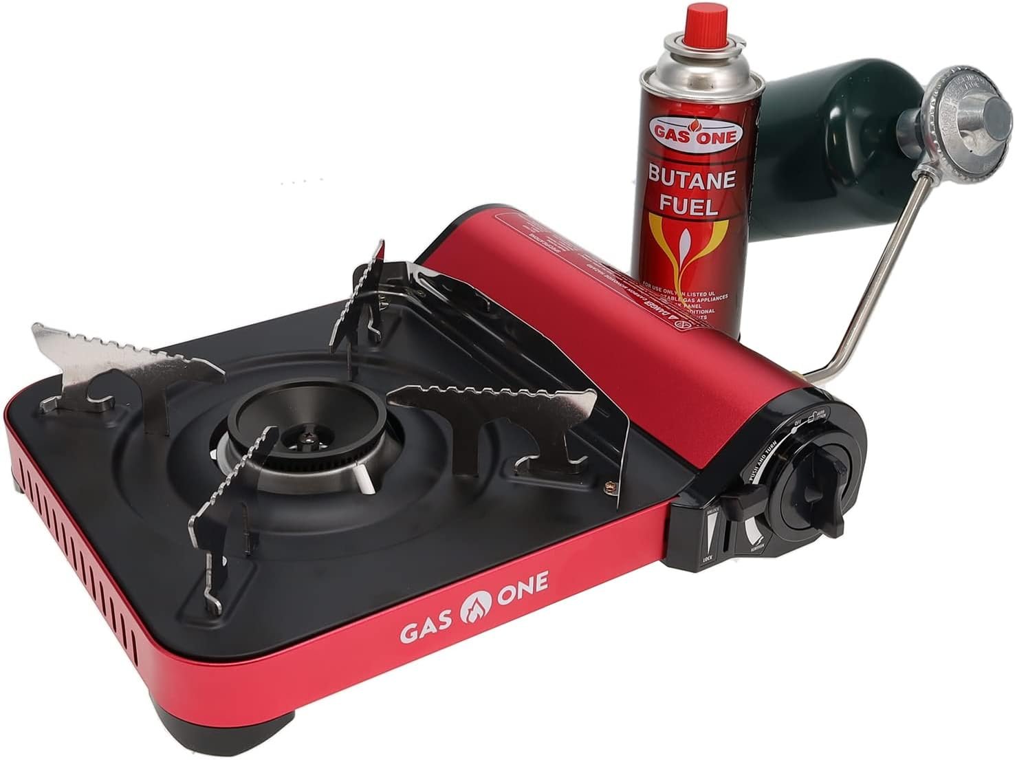 Combustible duel: compatible con butano (combustible no incluido) y combustible de propano (combustible no incluido), funciona en un solo cartucho de butano de 8 onzas o un cilindro de propano de 16.4 onzas, regulador de convertidor de propano incluido. **Con propano conecta la manguera adaptador a la estufa primero antes de conectarlo al tanque de propano de 16 onzas Encendido eléctrico piezoeléctrico: encendido piezoeléctrico que elimina el uso de encendedores/fósforos para encender la llama, sin necesidad de encendedores o fósforos con esta estufa Fácil de usar: nuestro GS-3100P es fácil de usar con dial térmico ajustable e encendido piezoeléctrico. ***Ideal para camping, mochilero y preparación de emergencias*** Características de seguridad: sistema de expulsión de cartucho con sensor de presión integrado y mecanismo de corte de flujo de gas (butano), expulsará el cartucho cuando se detecte presión irregular