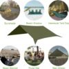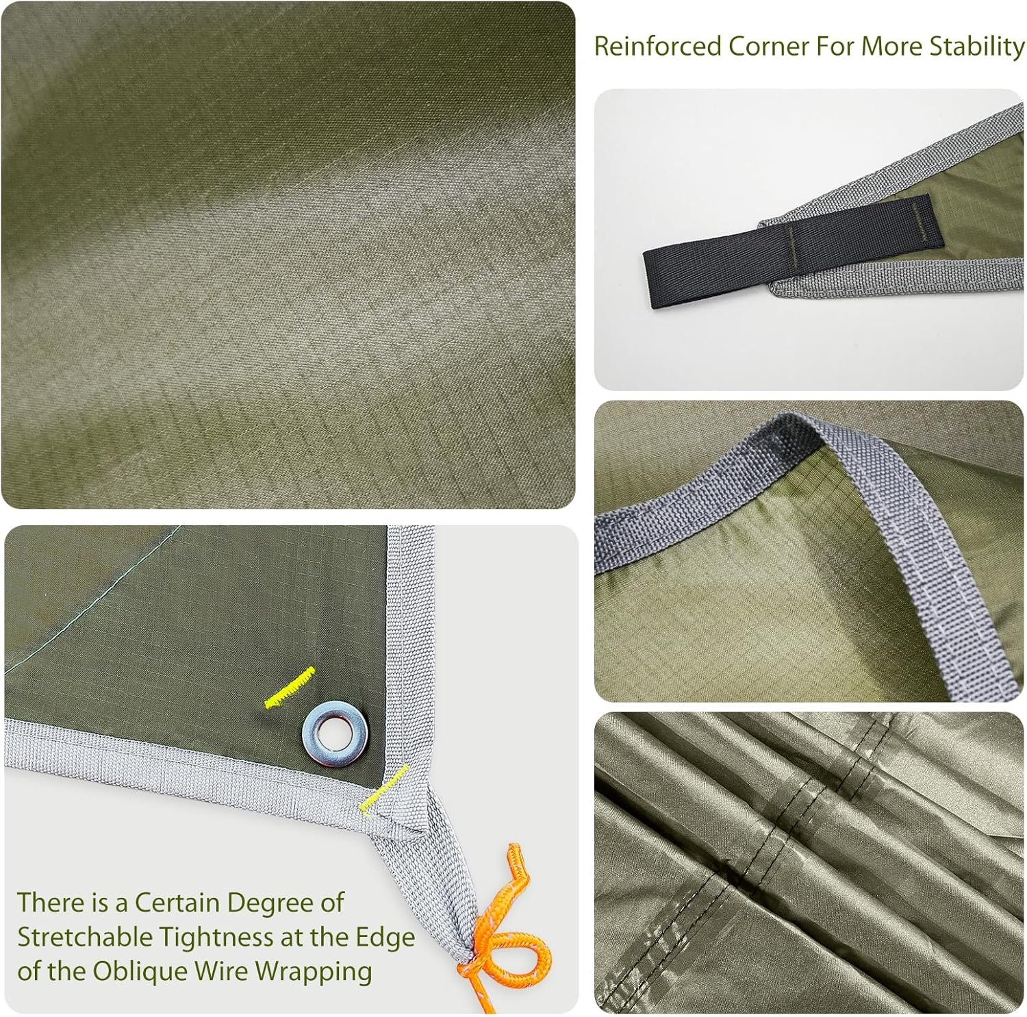 Tamaño de la lona de campamento grande: la lona de campamento GEERTOP mide aproximadamente 17.2 x 10 pies y pesa solo alrededor de 3.3 libras. Es ligero pero lo suficientemente grande como para cubrir completamente una tienda de campaña para 4 personas, hamaca doble o automóvil estándar fácilmente. Ten en cuenta que los postes de lona no están incluidos Impermeable/resistente a los rayos UV: hecha de tela de poliéster 210 T espesa, esta lona cuenta con resistencia al agua PU3000 mm y protección UV50+, manteniendo fuera el viento y la lluvia para mantener su tienda de campaña y equipo de camping secos Portátil y duradera: fabricada con tela a cuadros resistente al desgarro, esta lona es lo suficientemente resistente como para soportar abrasiones y pinchazos. Ofrece un amplio espacio para cocinar o disfrutar del té y es fácil de llevar donde quiera que vayas Fácil de instalar y estable: esta lona para mochileros viene con 8 cuerdas reflectantes y 8 estacas de aluminio para una instalación rápida en solo minutos. Utilízalo con tus tiendas de campaña y hamacas para un ambiente de descanso fresco. Ten en cuenta que los postes de lona no están incluidos Amplia aplicación: la lona se adapta a varios tamaños y ubicaciones de grupos, por lo que es adecuada para escenas al aire libre como campamentos, playas, bosques, montañas y parques. Proporciona amplia apertura y excelente ventilación Nota: Ten en cuenta que esta lona grande no incluye postes; viene con estacas y guylines para configuraciones básicas