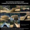 La lona ushcraft tiene una resistencia superior a los pinchazos y un revestimiento de poliuretano impermeable de 0.591 in líder en la industria. Nailon Ripstop 70D. Con un total de 19 trabillas reforzadas, tienes todos los ángulos cubiertos, incluso puedes utilizar el bucle central superior para hacer un tipi, fijar los bucles laterales a un árbol, valla o clavija en el suelo y ir directamente sobre la parte superior de tu tienda de campaña, ni siquiera necesitas árboles La lona de 10 x 10 pies ofrece mucho espacio para ti y un asociado para acurrucarte cuando las circunstancias salen mal. Colócalo entre árboles como refugio de supervivencia o úsalo para crear pisos de tienda de campaña impermeables. Un complemento imprescindible para equipos y equipos de supervivencia, incluso se puede utilizar como una manta de emergencia con el lado reflectante que ayuda a preservar el calor corporal. Lona de supervivencia Bushcraft diseñada para defenderse de la lluvia, el frío y los entornos hostiles, esta resistente lona impermeable te ayuda a superar la adversidad al aire libre en cualquier temporada El polímero aluminizado disuade la pérdida de calor cuando esta lona de emergencia se utiliza como refugio de campamento. En verano, te ayuda a mantenerte fresco al reducir la absorción de rayos UV. Portátil: fácil de plegar y desmontar, el producto también viene con una bolsa fácil de transportar para un fácil transporte y almacenamiento.
