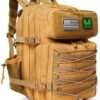 Gran espacio de 45 litros que necesita: el tamaño de esta mochila táctica grande es de aproximadamente 33,0 cm x 30,5 cm x 50,8 cm, con una capacidad de 45 litros y un peso de 3 libras. Grandes compartimentos de almacenamiento interiores multicapa que pueden acomodar todo tu equipo básico. Adecuado para fitness, viajes, senderismo, senderismo, camping, caza, escuela, gimnasio, etc. Además, también se puede utilizar como una bolsa de emergencia o bolsa de emergencia en su automóvil o camión, almacenando suministros durante 2 a 3 días para satisfacer las necesidades de emergencia. Material impermeable duradero 900D: esta mochila de asalto está hecha de tela de nailon Oxford 900D de alta calidad, que es resistente al agua, resistente a los arañazos, y todos los puntos de tensión están reforzados con costura de doble aguja, por lo que es duradera y comparable a las mochilas de grado militar. Si eres un entusiasta del aire libre, explorador de la naturaleza, excursionista, campista, conductor de camión, trabajador de la construcción, oficial de policía, bombero, estudiante de último año o enfermera, entonces es adecuado para ti. Diseño modular del sistema Molle: Este sistema de correas de mochila Molle en la parte delantera, lateral e inferior está diseñado para usarse junto con otros equipos, lo que le permite colocar bolsas o engranajes adicionales como bolsa de accesorios, kit de herramientas, walkie talkie o bolsa para teléfono, bolsa de primeros auxilios, bolsa de linterna, tienda de campaña, saco de dormir y colchoneta. Múltiples compartimentos: la mochila resistente tiene 5 compartimentos independientes: dos bolsillos delanteros para guardar objetos pequeños, dos compartimentos grandes con bolsillos con cremallera incorporados y bolsillos de malla para almacenar artículos grandes e importantes (como una computadora portátil de 43,2 cm), y un bolsillo trasero oculto para guardar artículos de uso frecuente. La mochila militar se puede abrir 180 grados, por lo que es fácil empacar artículos. Puede contener una amplia gama de equipos para misiones de asalto de tres días u otras actividades al aire libre. Múltiples diseños cuidadosos: la mochila táctica para laptop tiene un puerto de carga USB, un puerto de reposición de agua (necesita ser cortado) para una fácil conexión a una cámara de hidratación, un área de velcro de cara completa para bricolaje, cremalleras bidireccionales de alta calidad en todos los compartimentos y dos bolsillos laterales de malla para almacenar una botella de agua de 25.4 fl oz o un paraguas. Además, hay correas de compresión ajustables en el lateral y en la parte delantera para evitar que la mochila se mueva.
