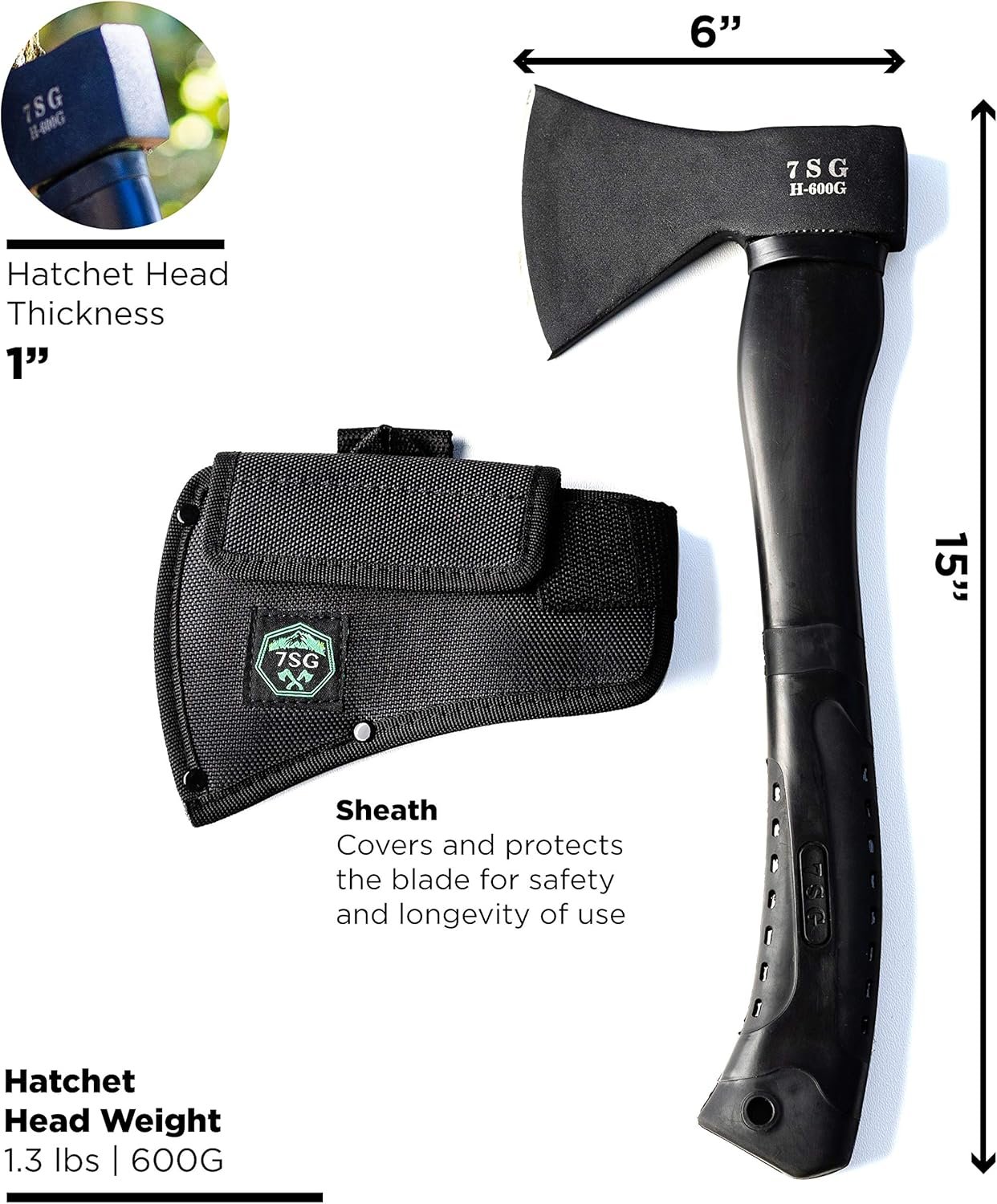 Hacha de lanzamiento: el perfil específicamente estrecho permite un rendimiento perfecto como hacha de lanzamiento. Cabeza ultra afilada ideal para lanzar hachas. Diseñar un hacha de lanzamiento su peso, nitidez y durabilidad han sido todos teniendo en cuenta sin comprometer lo que le permite utilizar en cualquier nivel de competencia. Hacha de campamento de supervivencia: el mango de fibra de vidrio negro ligero de grado militar mantiene el peso bajo, lo que permite que se empaque en tu equipo de campamento. La cabeza del hacha está en el ángulo ideal para cortar eficazmente el cepillo y cortar madera. Funda resistente: funda de nailon balístico específicamente diseñada para la cabeza del hacha de 7SG para garantizar que tu hoja se mantenga afilada y que tu ser querido y te mantengas seguro. Las solapas de múltiples aberturas te permiten acceder y utilizar rápidamente tu hacha para acampar y sobrevivir. Dos bucles de enganche adyacentes en la parte superior de la funda permiten colgarla y asegurarla independientemente de la orientación. Fácil de usar: el peso ideal como hacha de campamento con diseño de mango ergonómico permite que cualquier persona competente de tu grupo de senderismo o campamento balancee eficazmente el hacha para cortar madera, limpiar el cepillo, usarlo para asegurar estacas, jugar limpio o incluso en tu arsenal de herramientas de jardín. Hacha de supervivencia táctica y martillo: todos los hachas oscurecidos para acampar y hacha de supervivencia diseñados para mezclarse con tu equipo y el medio ambiente. Una herramienta ligera y versátil con ángulo de cabeza ideal de 20 grados para cortar y cortar con cabeza trasera plana perfecta para conducir estacas, actuando como un martillo muy necesario herramienta en el campo.
