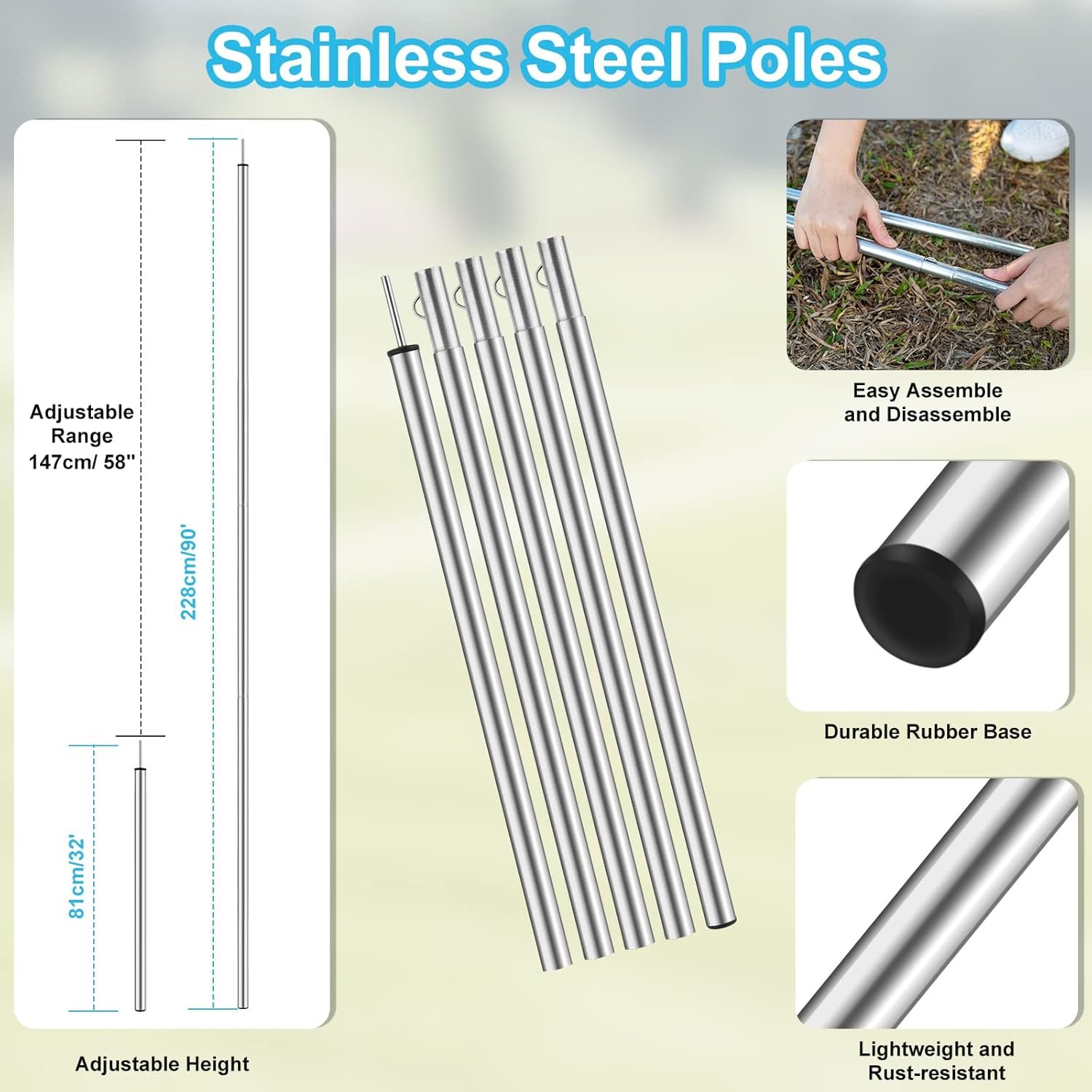 Resistente al agua y protección UV: cuenta con una clasificación confiable de 118.110 in de impermeabilidad, que ofrece una fuerte protección durante lluvias moderadas a fuertes. Tenga en cuenta que en condiciones extremas, como tormentas pesadas prolongadas o vientos fuertes, todas las moscas de lluvia, incluido este producto, pueden enfrentar desafíos. Para un rendimiento óptimo, recomendamos su uso en entornos de campamento estándar y recomendamos tomar precauciones adicionales en climas severos. También es un parasol fiable con capa interior plateada para protección UV. Con postes de altura ajustable: la lona de campamento PAHTTO viene con 2 postes, de los cuales la altura se puede ajustar de 17 a 228,6 cm para satisfacer tus diferentes necesidades. Puede obtener diferentes formas de sombra ajustando la altura y la posición de los postes atados con la lona. Duradera, ultraligera y portátil: hecha de tela de poliéster 210T, la lona de la tienda es ligera pero resistente, duradera y fuerte para evitar abrasiones, pinchazos y desgarros. La lona con postes y otros accesorios se puede empacar en la bolsa de almacenamiento de calidad que viene con, compacta y portátil para llevar a cualquier lugar. Multifuncional: nuestra lona de hamaca de 12 x 10 pies es adecuada para uso durante todo el año como un refugio multifuncional para el sol, la lluvia, el viento/la nieve, la hamaca para la lluvia, la sábana del suelo o la alfombra de picnic/playa. Amplio refugio adecuado para 4-6 personas, por lo que es ideal para acampar en grupo, viajes familiares o reuniones al aire libre La mejor relación calidad-precio: el paquete incluye todo lo necesario: 1 lona de campamento (12 x 10 pies), 2 postes, 8 estacas, 8 líneas de sujeción y 1 bolsa de transporte. También ofrecemos 100% satisfacción garantizada con garantía de 1 año. No dudes en ponerte en contacto con nosotros si hay alguna pregunta y te responderemos lo antes posible.