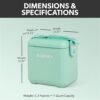 Instrucciones de cuidado del producto: Limpia las superficies interiores y exteriores antes de guardarlas y entre usos. Para evitar manchas y olores, vacíe el enfriador de contenido después de su uso. La suciedad ligera o las manchas se pueden limpiar con agua o detergente suave. Las manchas más duras se pueden limpiar con una solución diluida de bicarbonato de sodio y agua. Asegúrese de que todos los agentes de limpieza estén completamente enjuagados y que el refrigerador esté seco antes de guardarlo.