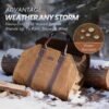 Lona encerada de 16 onzas, resistente al desgaste, a la suciedad y al agua. Diseño práctico: soporte para troncos con asas de piel sintética, atemporal y sólido; el diseño de paredes sin extremos funciona muy bien para llevar una buena cantidad de madera con cualquier tamaño, se puede plegar, fácil de almacenar cuando no está en uso. Material resistente: la tela de lona está importada con mano de obra fina; la lona resistente es resistente a los arañazos, las manchas y al desgaste; las asas están hechas de material fuerte para una larga duración; correa de poliuretano bien hecha alrededor de toda la bolsa fijada con remaches, duradero, resistente a la carga y aspecto moderno, incluso puedes llevarlo como un regalo para un amigo. Multifunción: no solo es un portador de leña, para mantener las virutas de madera en el interior y no dispersas en el piso, para fogata, parrilla y casi todo sobre el aire libre; sino que también se puede utilizar para otros fines de transporte o almacenamiento como: herramientas, picnic, camping, embalaje, juguetes para niños, como un generoso soporte de moda. Dimensiones de gran tamaño: 99,1 cm de largo x 45,7 cm de ancho (no incluye asas), con asas de poliuretano de 14,2 cm, tamaño adecuado para llevar. Regalos para familiares y amigos: ayúdala a aligerar la carga de llevar