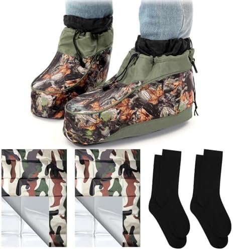 Juego de equipo para exteriores para clima frío: recibirás un par de fundas aisladas para botas, dos mantas térmicas de supervivencia y dos pares de calcetines, suficientes para tus actividades al aire libre de invierno Pies cálidos: la cubierta aislada de las botas para clima frío mantiene tus pies calientes, secos y cómodos; la suela de cuero impermeable y antideslizante de las botas para clima frío te permite disfrutar de actividades al aire libre de invierno durante más tiempo Materiales calificados: los calcetines para clima frío utilizan tecnología avanzada que absorbe la humedad para absorber eficazmente la humedad, manteniendo tus pies secos y cómodos durante mucho tiempo Tamaño ideal: las botas para clima frío miden aproximadamente 38,1 cm x 50,0 cm x 30,0 cm / 38,1 cm x 50,0 cm x 30,0 cm; la manta térmica de supervivencia mide aproximadamente 210,1 cm x 140,0 cm/210,1 cm x 140,0 cm; los calcetines miden 14.2 in planos en la suela y 12.2 in de alto Fácil de llevar y transportar: para garantizar que las botas de clima frío se ajusten a la mayoría de los pies, hemos ajustado especialmente la circunferencia de apertura de la cubierta del zapato y agregamos un diseño de cordón, para que sea cómodo y cómodo de llevar, sin perder calor interno, y al mismo tiempo puede aislar el aire frío exterior de la entrada
